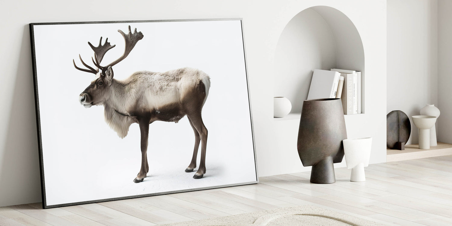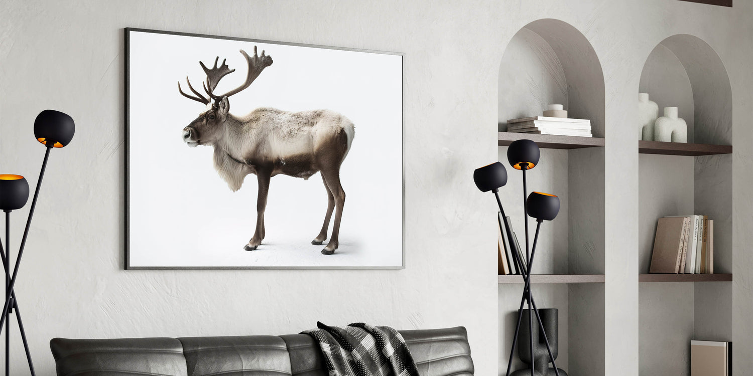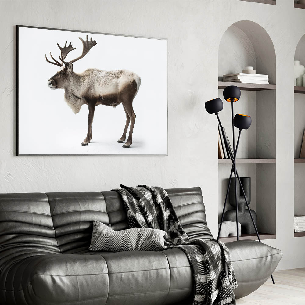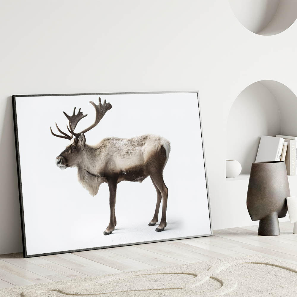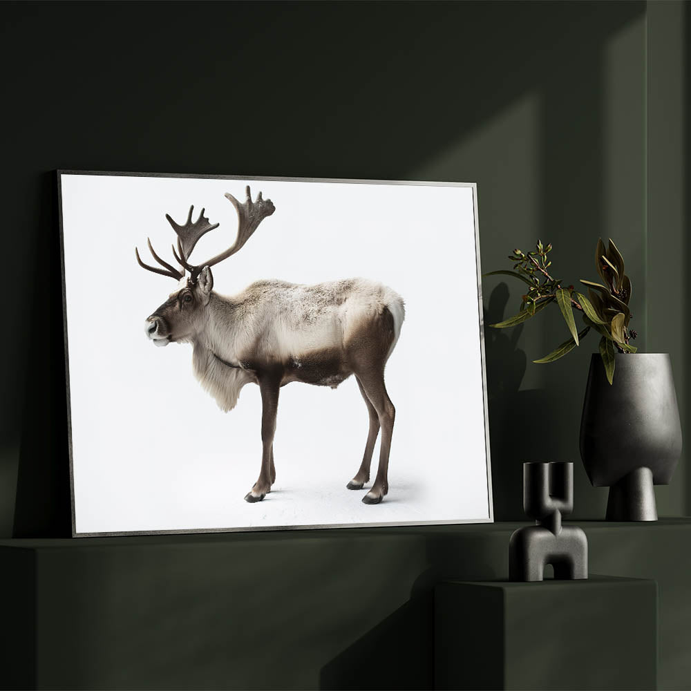 Capture the essence of the wild with this Elegant Elk Framed Art. This striking piece of wildlife art portrays an elk in its full glory, standing tall against a pristine white backdrop. The minimalistic background emphasizes the majestic details of the elk, making it an ideal addition to any modern or nature-inspired decor.