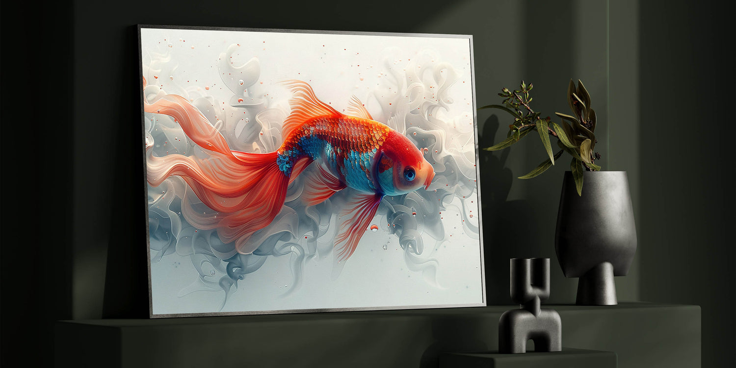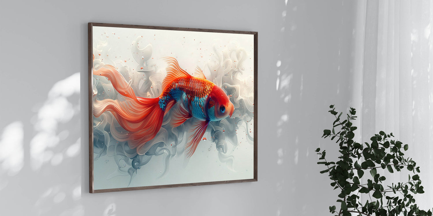 Add a touch of elegance to your home with this exquisite Goldfish wall art. This captivating piece features a beautifully detailed goldfish swimming gracefully through a serene underwater scene. The soft, flowing lines and vibrant colors make this artwork a perfect choice for anyone looking to bring a sense of tranquility and beauty into their living space. Whether you're decorating a living room, bedroom, or office, this fish canvas print will instantly elevate the ambiance of your space.