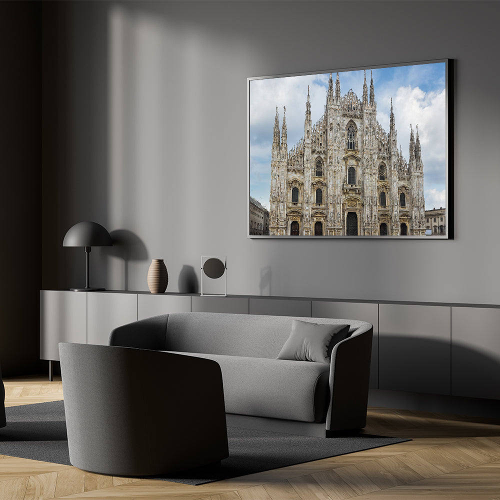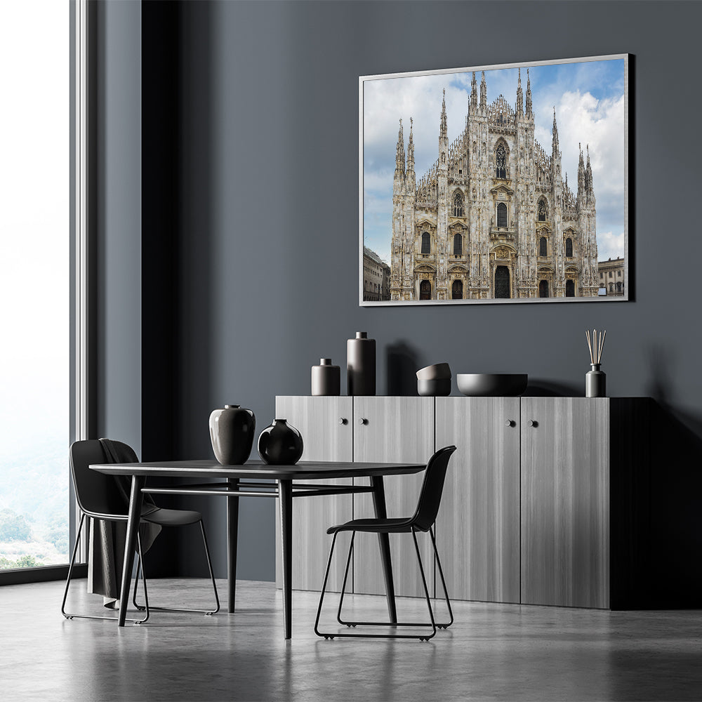 Bring the grandeur of European Gothic architecture into your home with this stunning wall art featuring a magnificent cathedral. This piece captures the intricate details and towering spires of the cathedral, set against a serene sky. The craftsmanship and historical significance of the architecture are beautifully highlighted, making this artwork a timeless addition to any space.