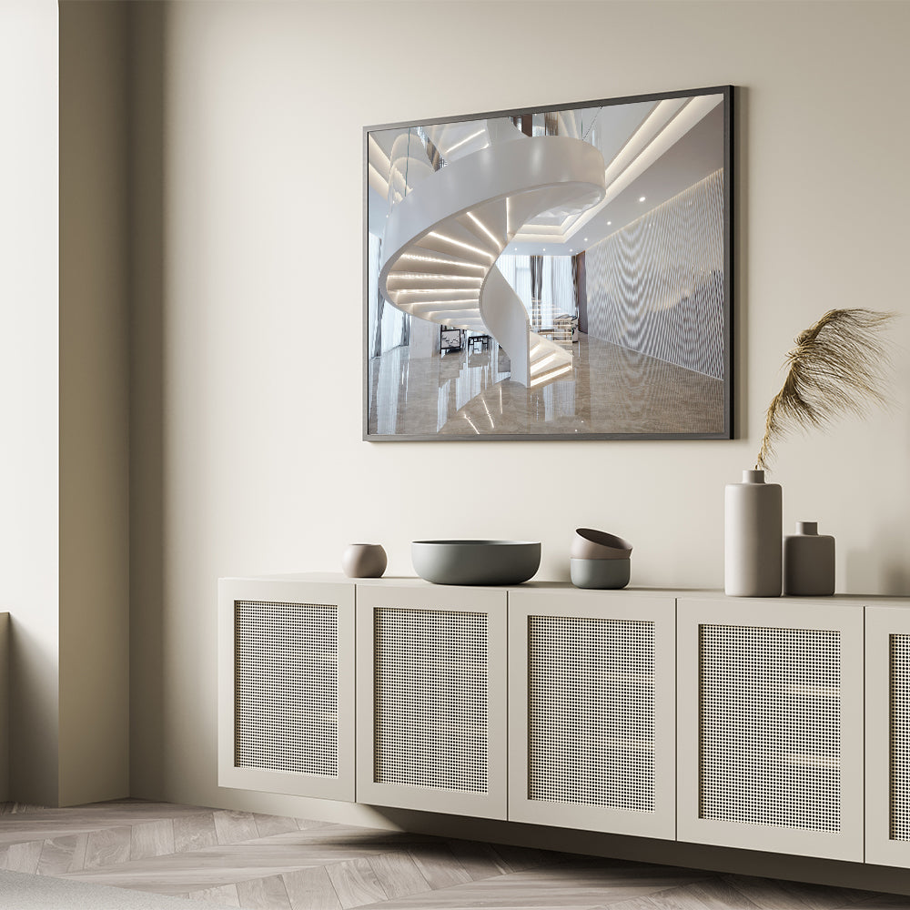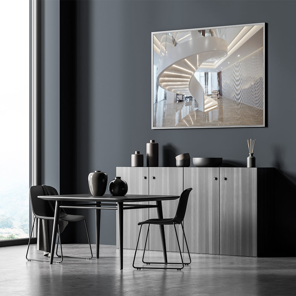 This elegant spiral staircase wall art is perfect for those who appreciate high-end design and modern architecture. Its timeless appeal and luxurious aesthetic make it a versatile addition to any space, elevating your decor with a touch of sophistication.