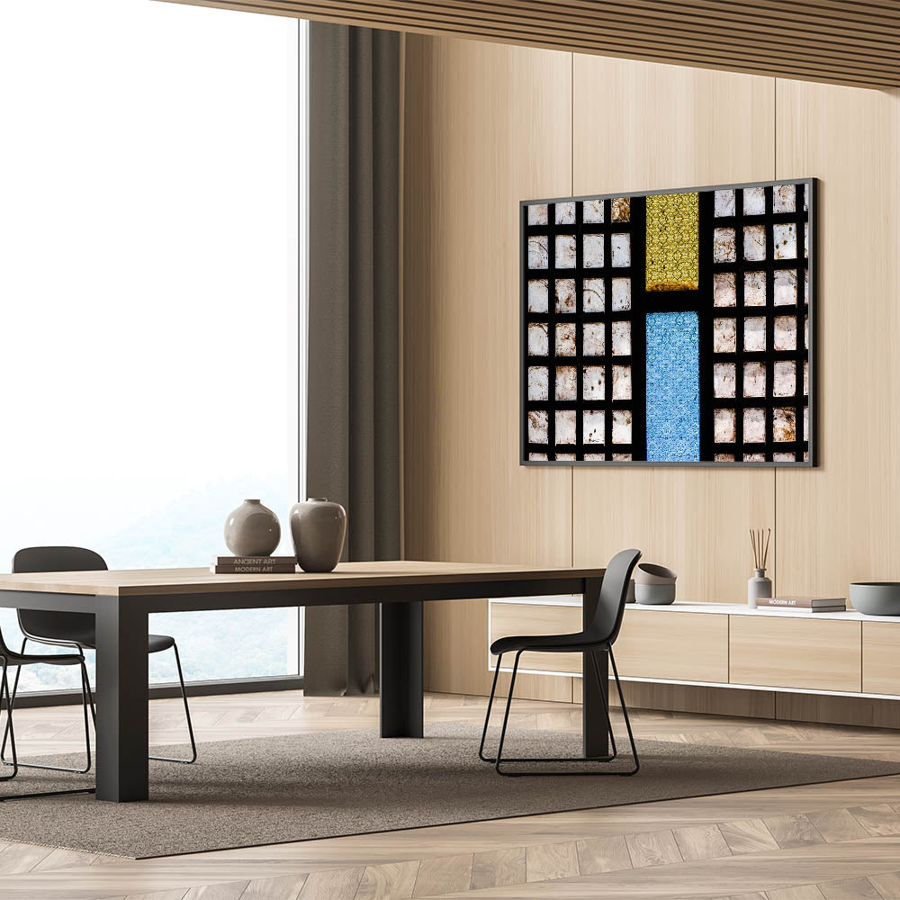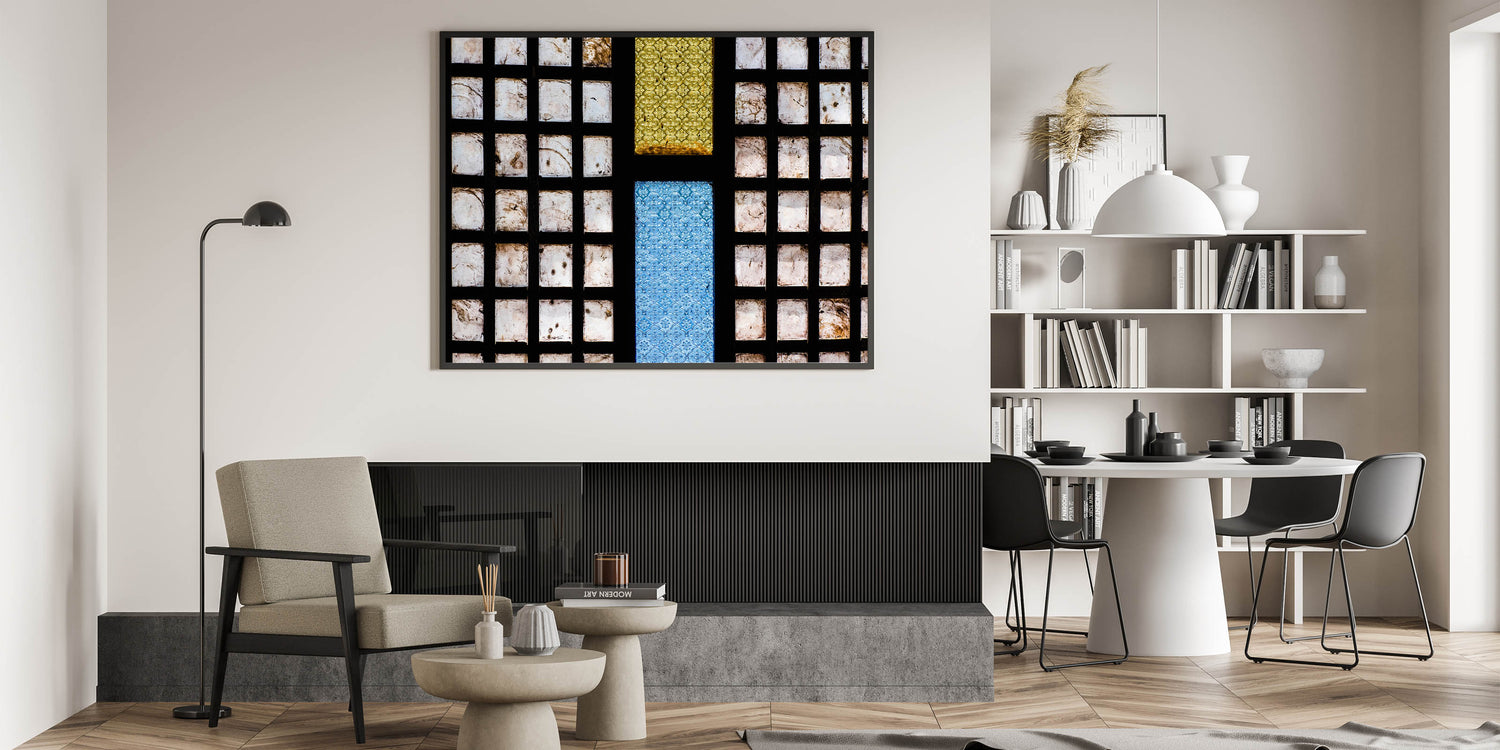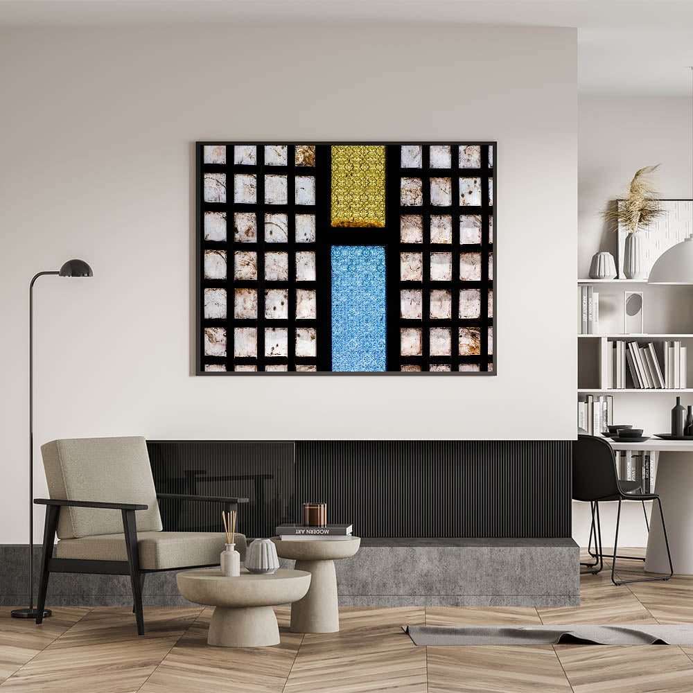 Add a touch of Filipino heritage to your space with this stunning artwork featuring an intricate window design. The detailed craftsmanship and vibrant glass panels, with shades of blue and yellow, bring a unique sense of cultural richness and historical architecture into your home. The geometric patterns and textured panes evoke the traditional elegance of Filipino artistry, making it a perfect piece for anyone who appreciates cultural and architectural details.