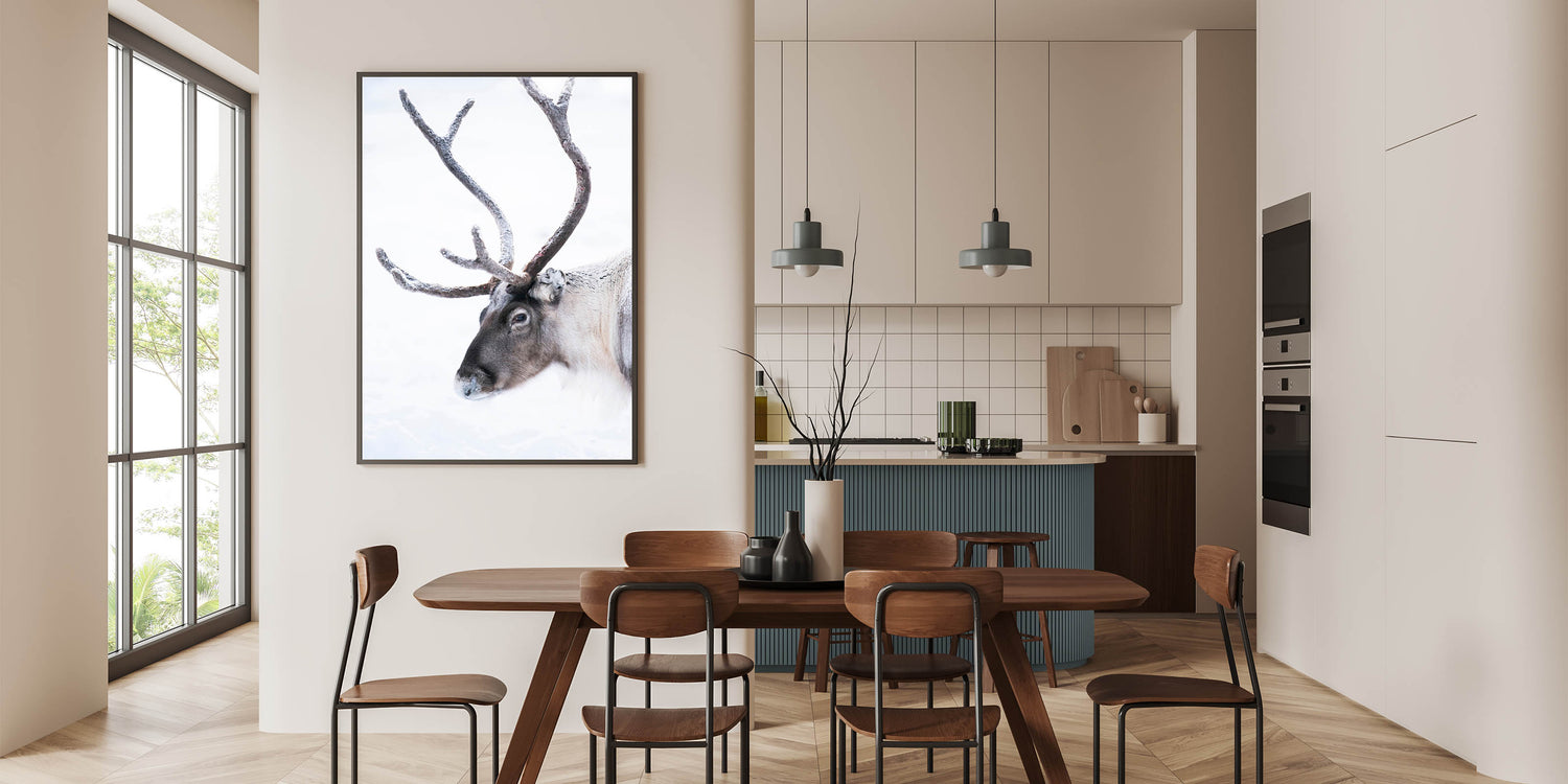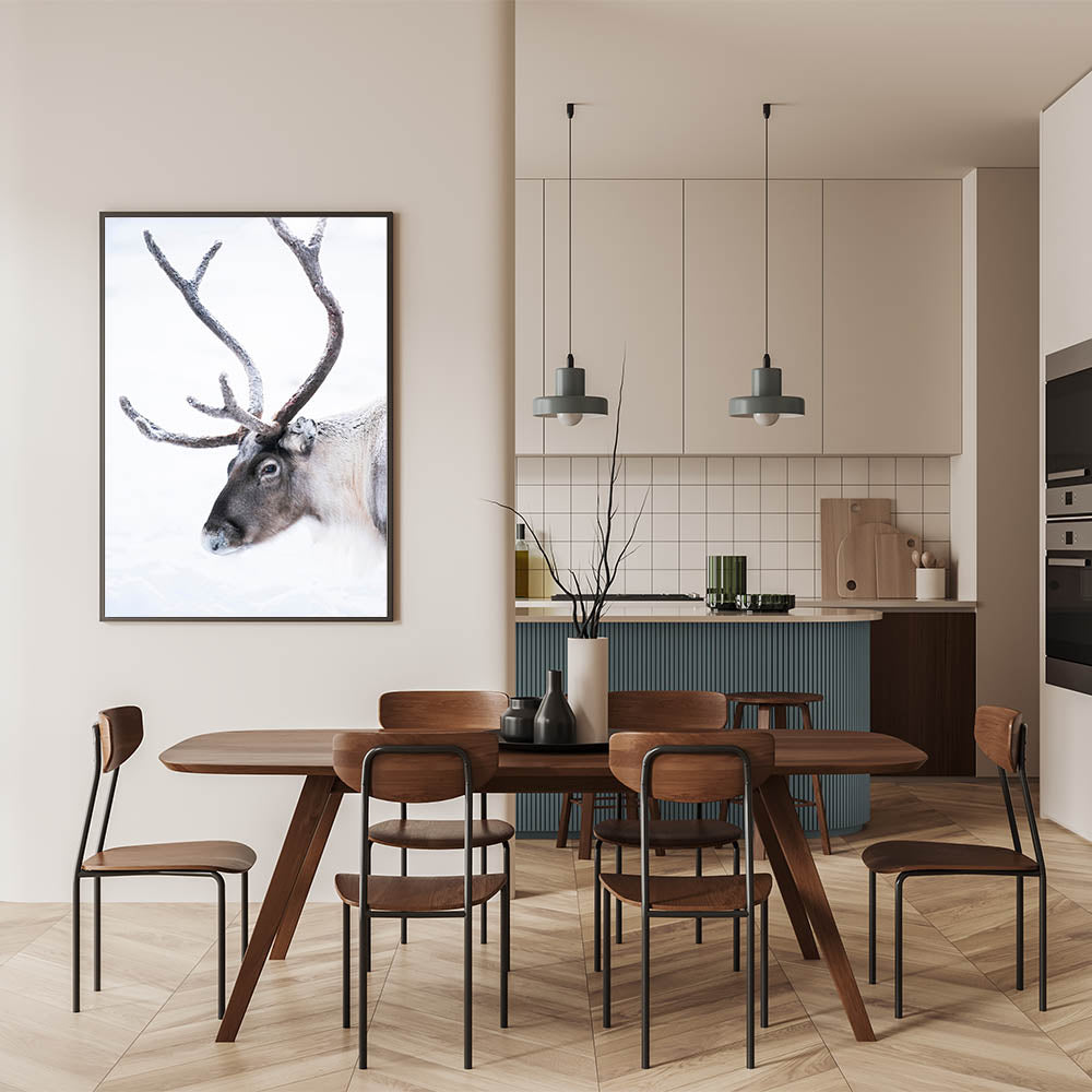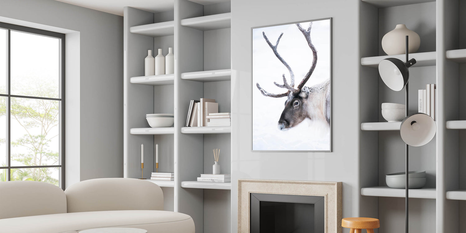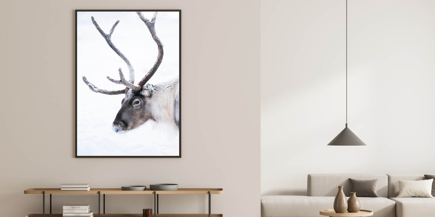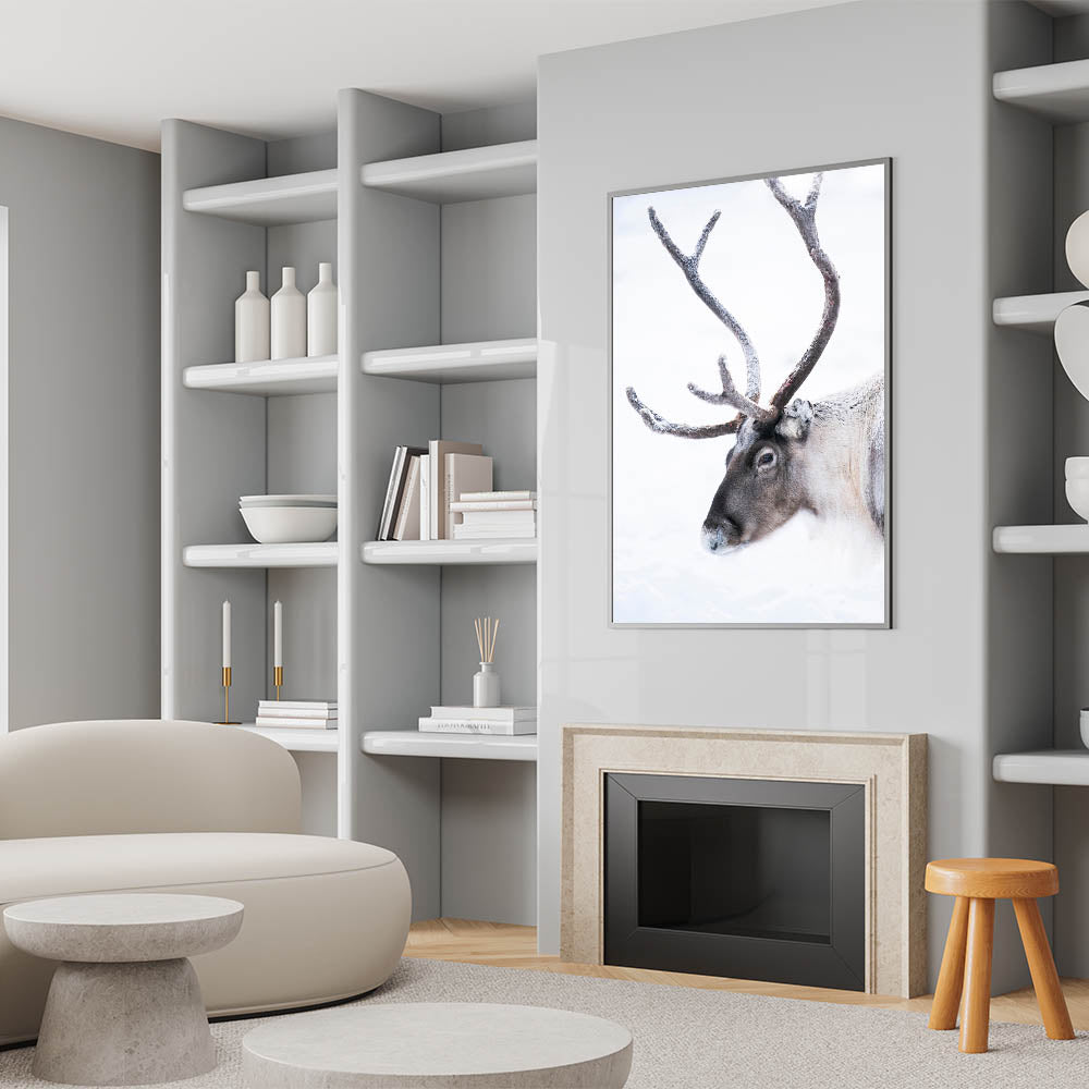 This reindeer artwork perfectly captures the quiet majesty of Finland’s wilderness. Whether you choose a framed print or acrylic glass, this high-quality piece will bring a touch of Nordic charm and winter elegance to your space.