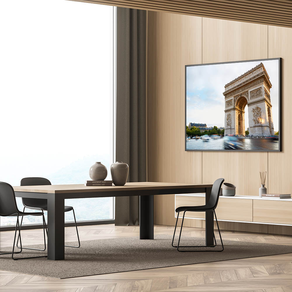 Add a touch of timeless Parisian elegance to your home with this stunning Paris wall art, featuring the majestic Arc de Triomphe captured in its full glory. The beautiful daylight contrasts with the soft motion blur of the bustling traffic, creating a captivating sense of movement and life in this iconic Paris landmark. Whether you're looking to enhance your collection of Paris canvas prints or add a statement piece to your room, this artwork offers both style and sophistication.