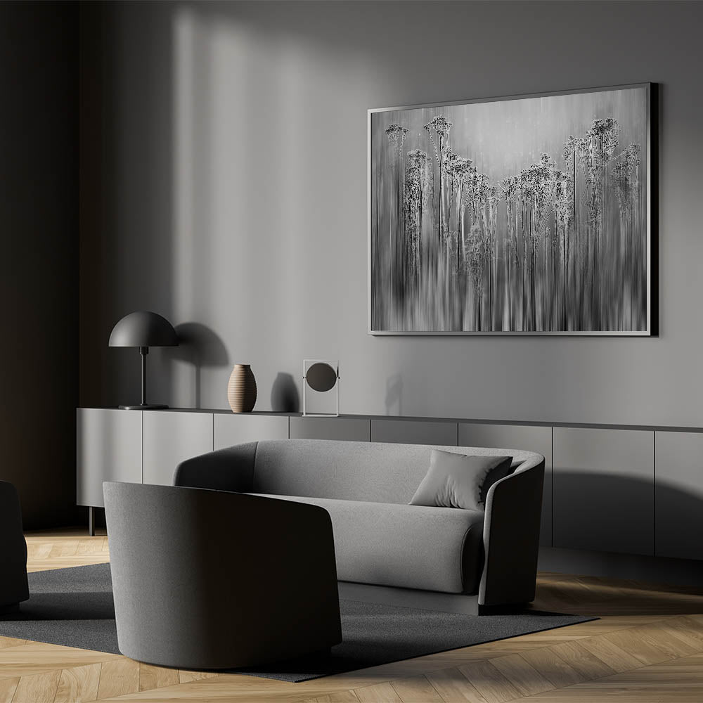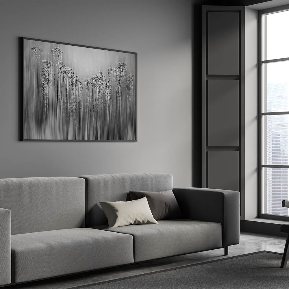 This frosted field artwork captures the essence of winter’s quiet beauty, offering a peaceful and sophisticated addition to your home. Its monochrome palette and delicate details make it a timeless piece that brings the tranquil elegance of nature indoors.