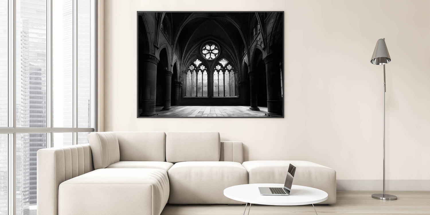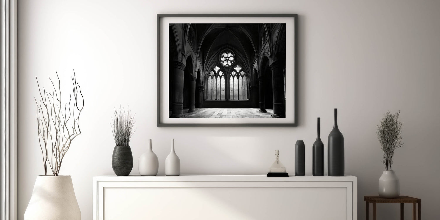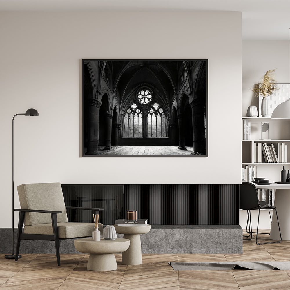 Gothic Church Interior - Monochrome Spiritual Wall Art for Home Decor