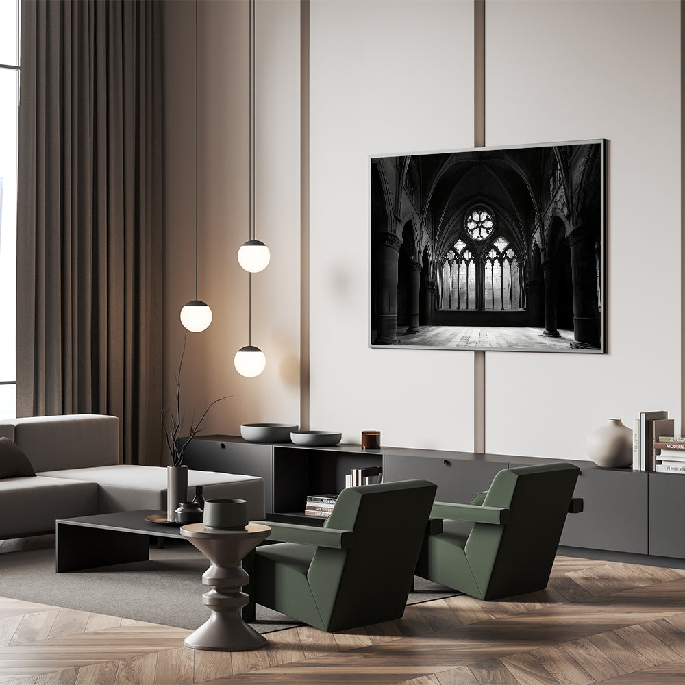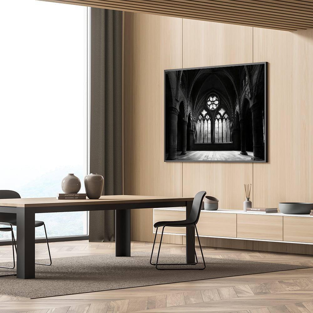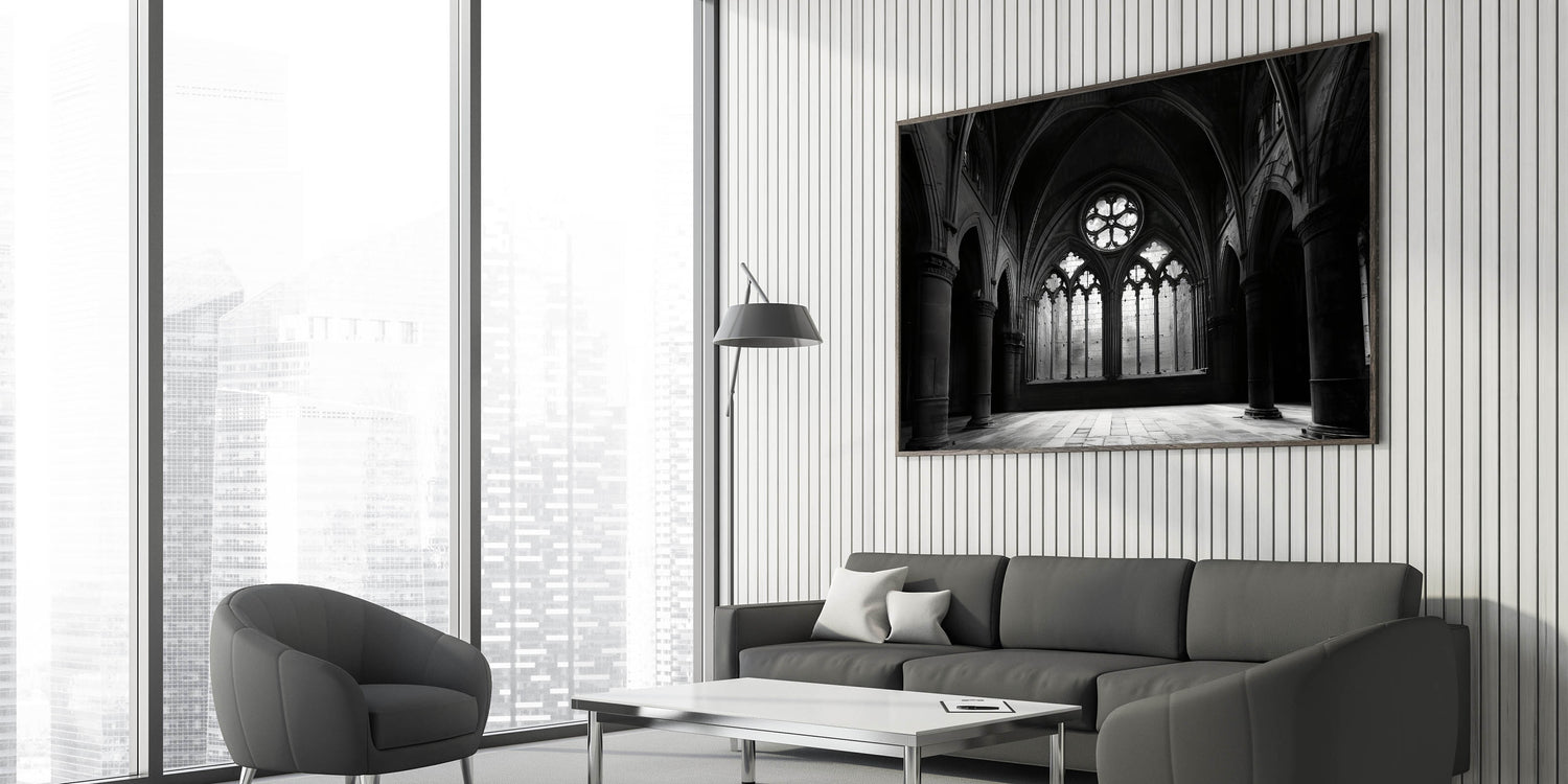 Gothic Church Interior - Monochrome Spiritual Wall Art for Home Decor