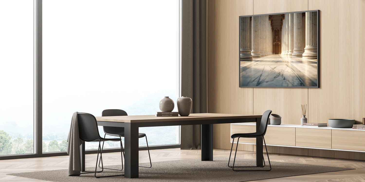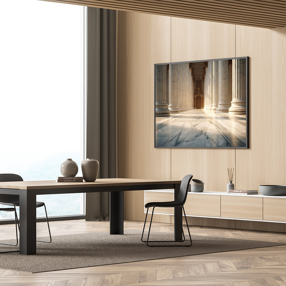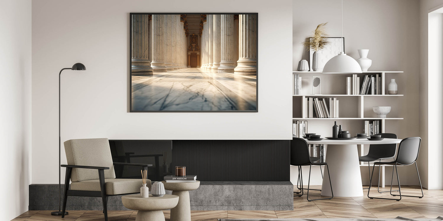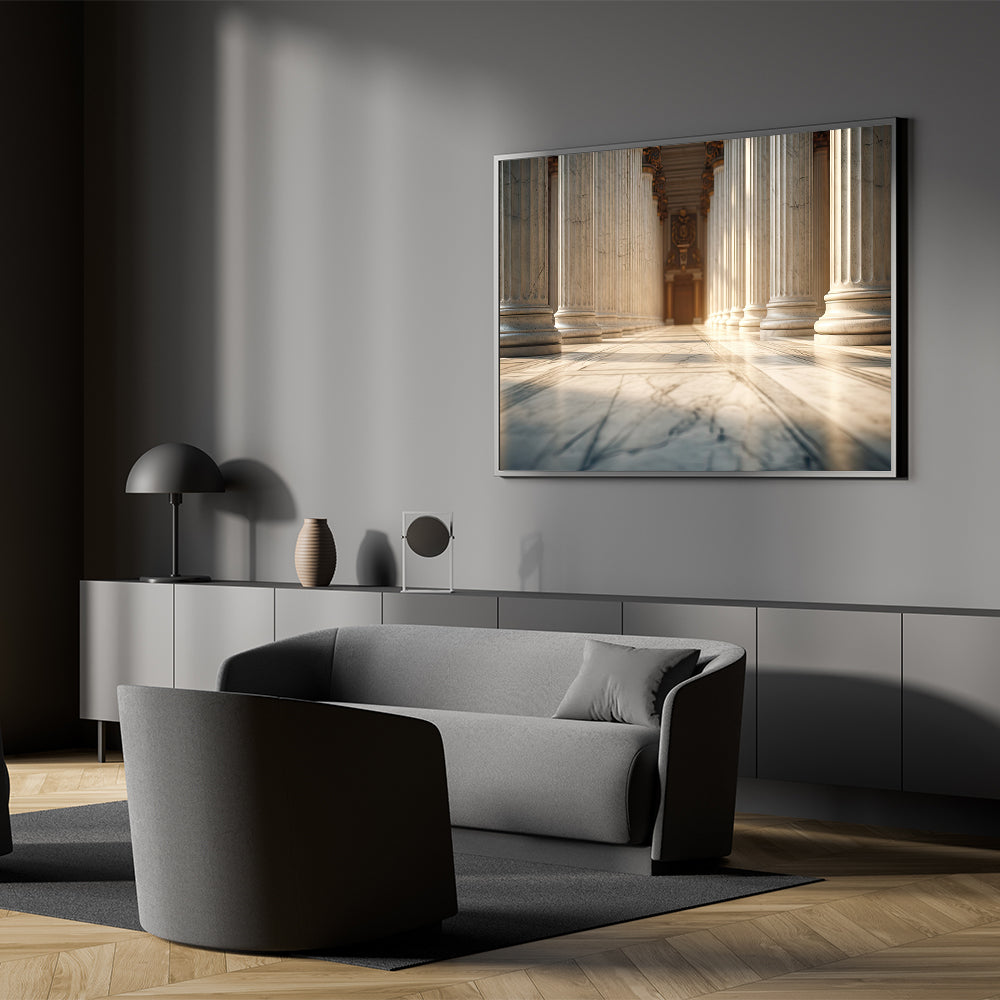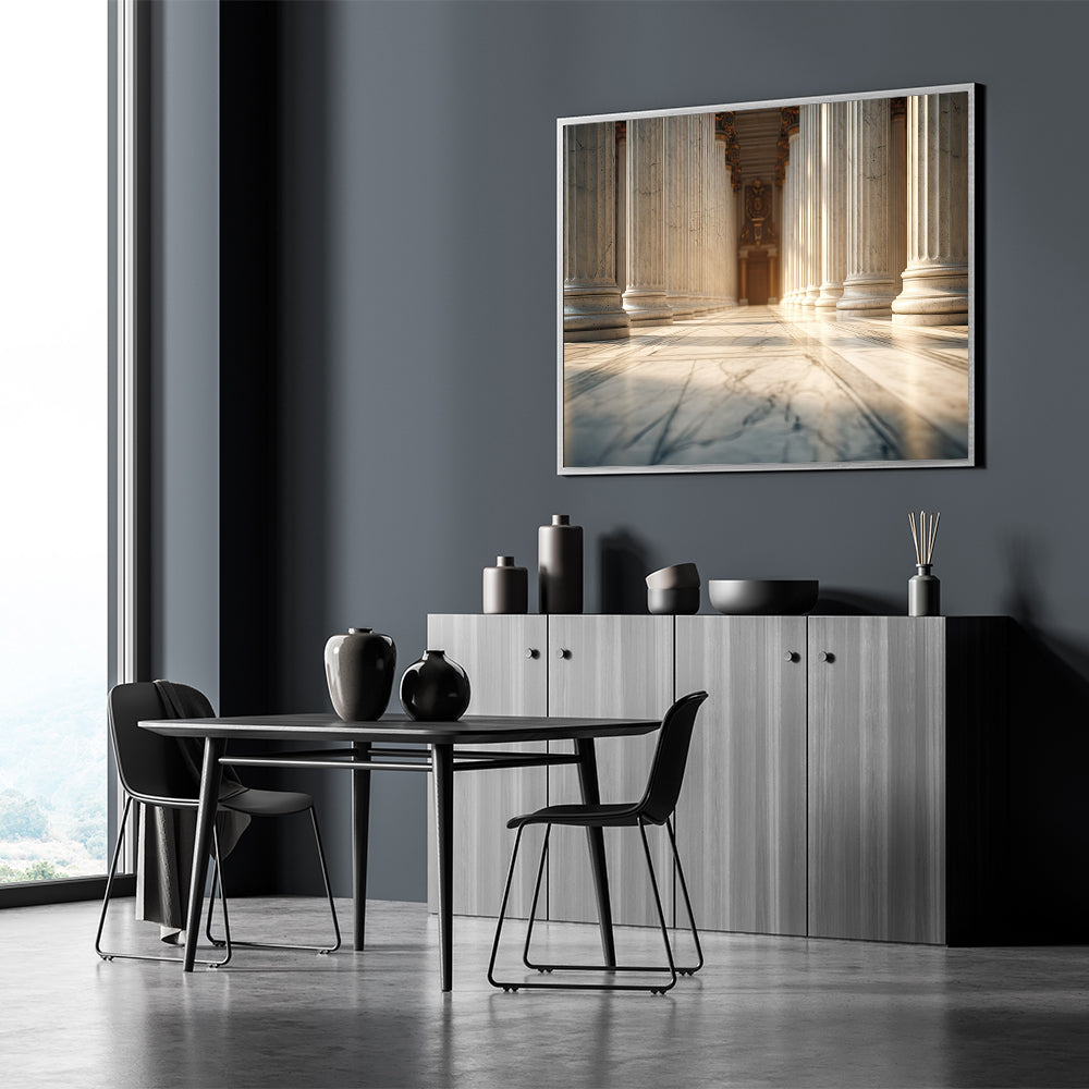 Bring the majesty of classical architecture into your home with this stunning Columns Wall Art. The artwork captures the grandeur of towering pillars in a beautifully lit hall, exuding elegance and historical significance. Perfect for architecture enthusiasts and those who appreciate timeless design, this piece will elevate any room with its sophisticated presence.