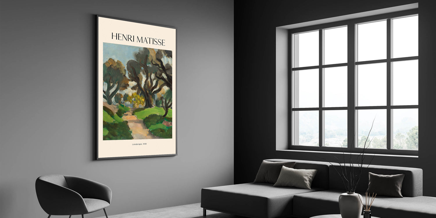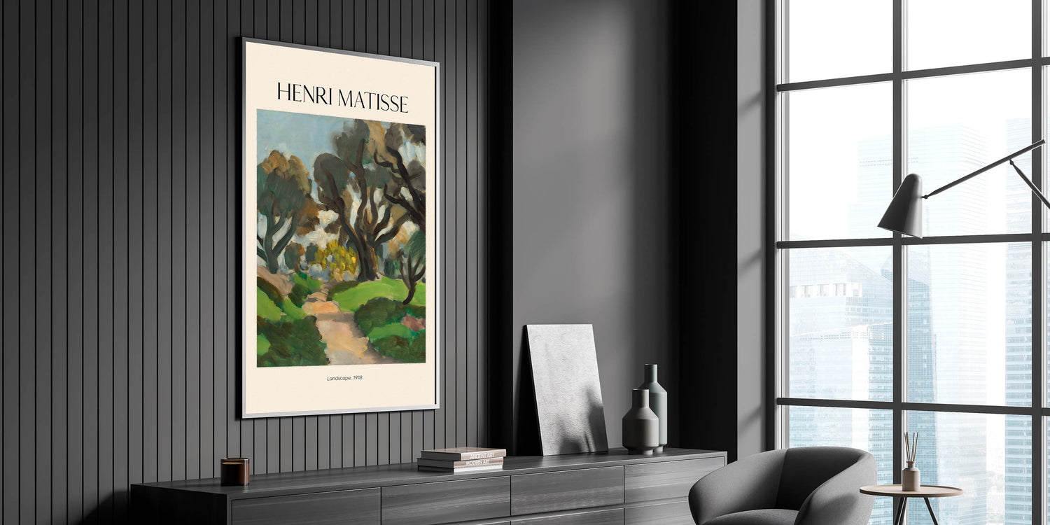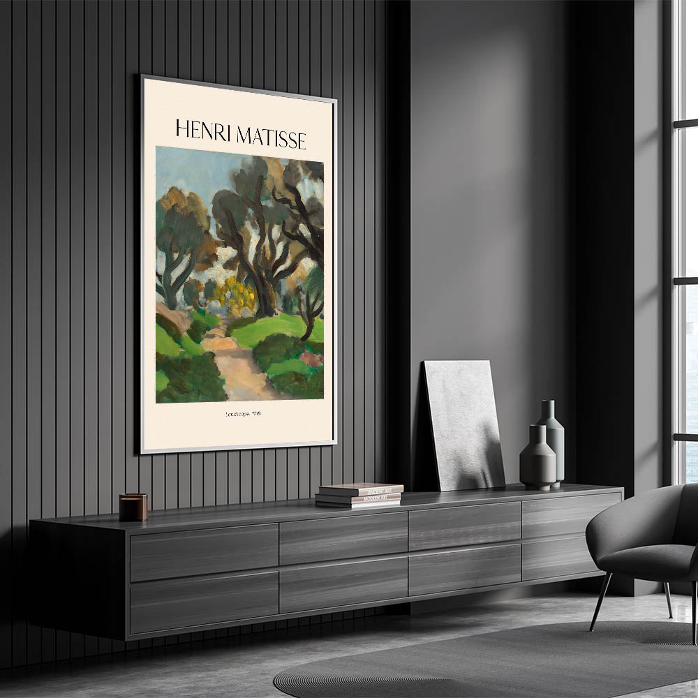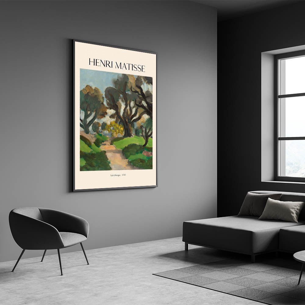 Experience the timeless beauty of Henri Matisse’s work. This landscape art piece is ideal for those seeking to add a touch of French modernism and a vibrant nature-inspired aesthetic to their space. Matisse’s expressive shapes and dynamic colors will elevate your home decor.