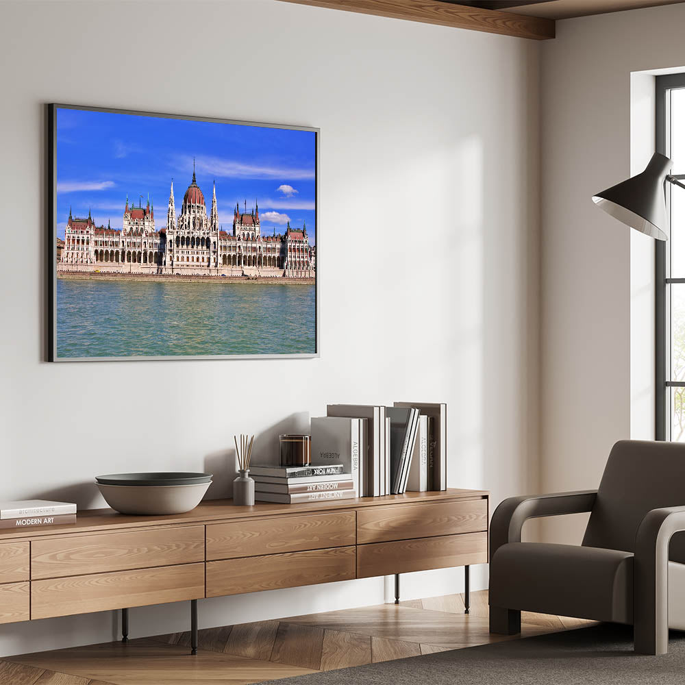 - Gorgeous Hungary artwork featuring the Hungarian Parliament in daylight