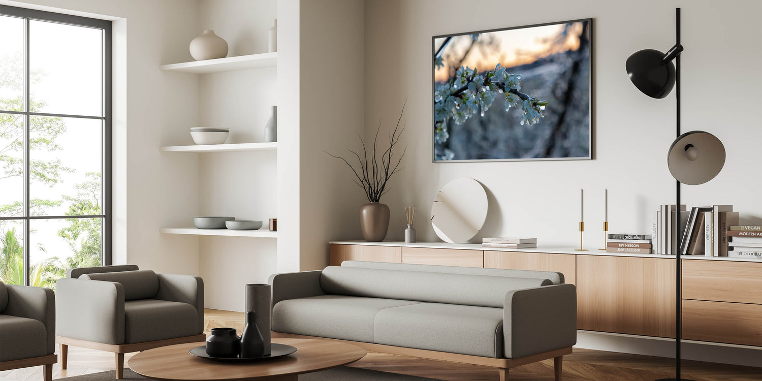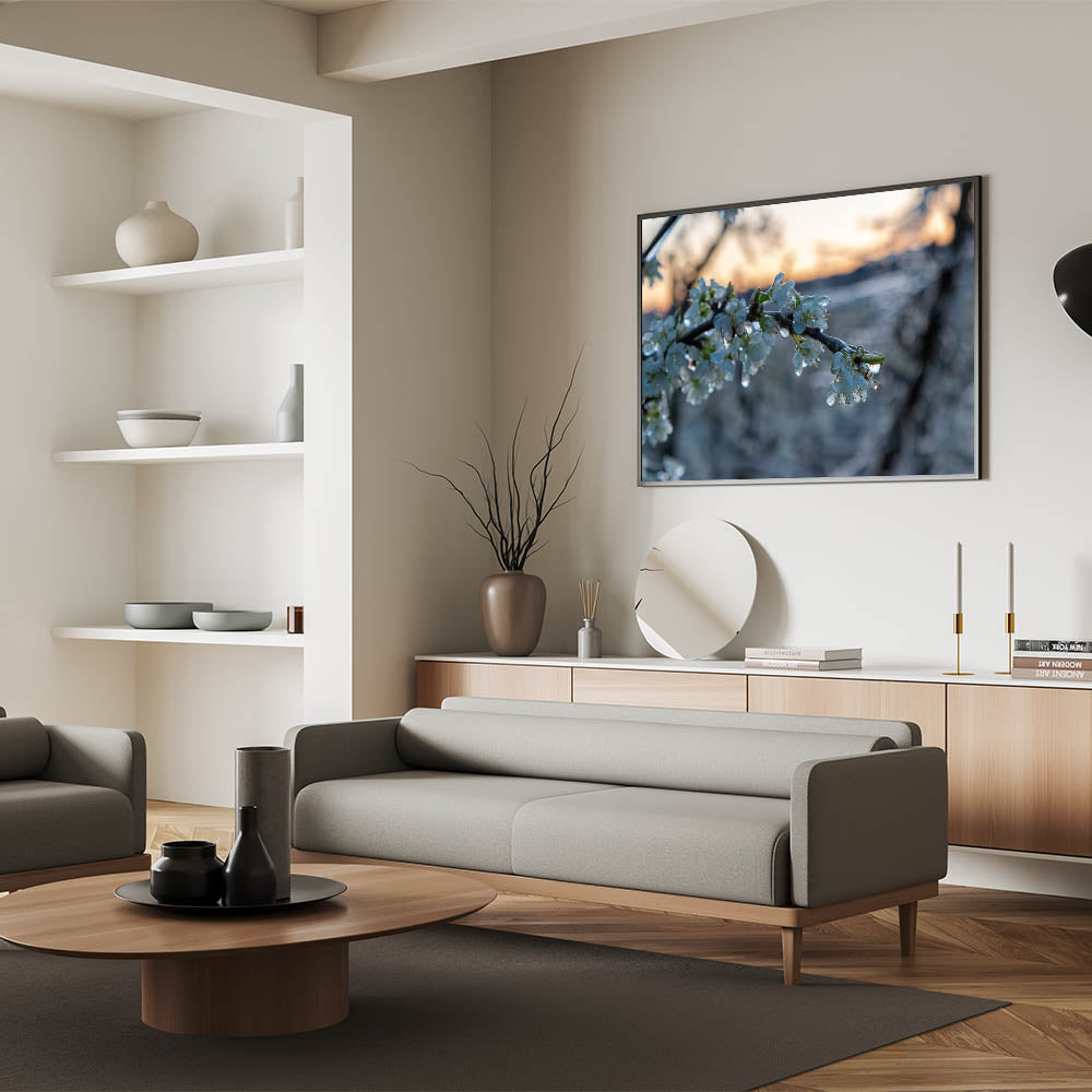 - Available on premium materials such as Stretched Canvas, Acrylic Glass, and Framed Canvas for a high-end look.