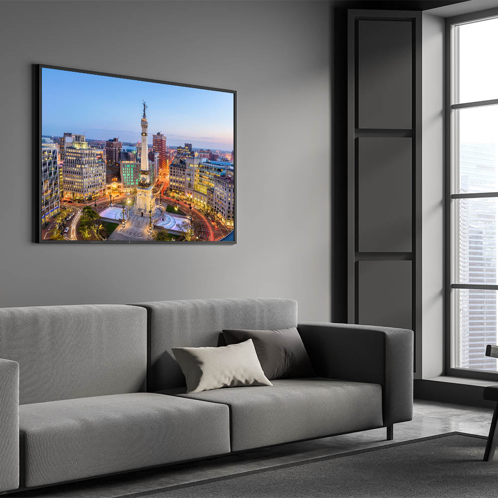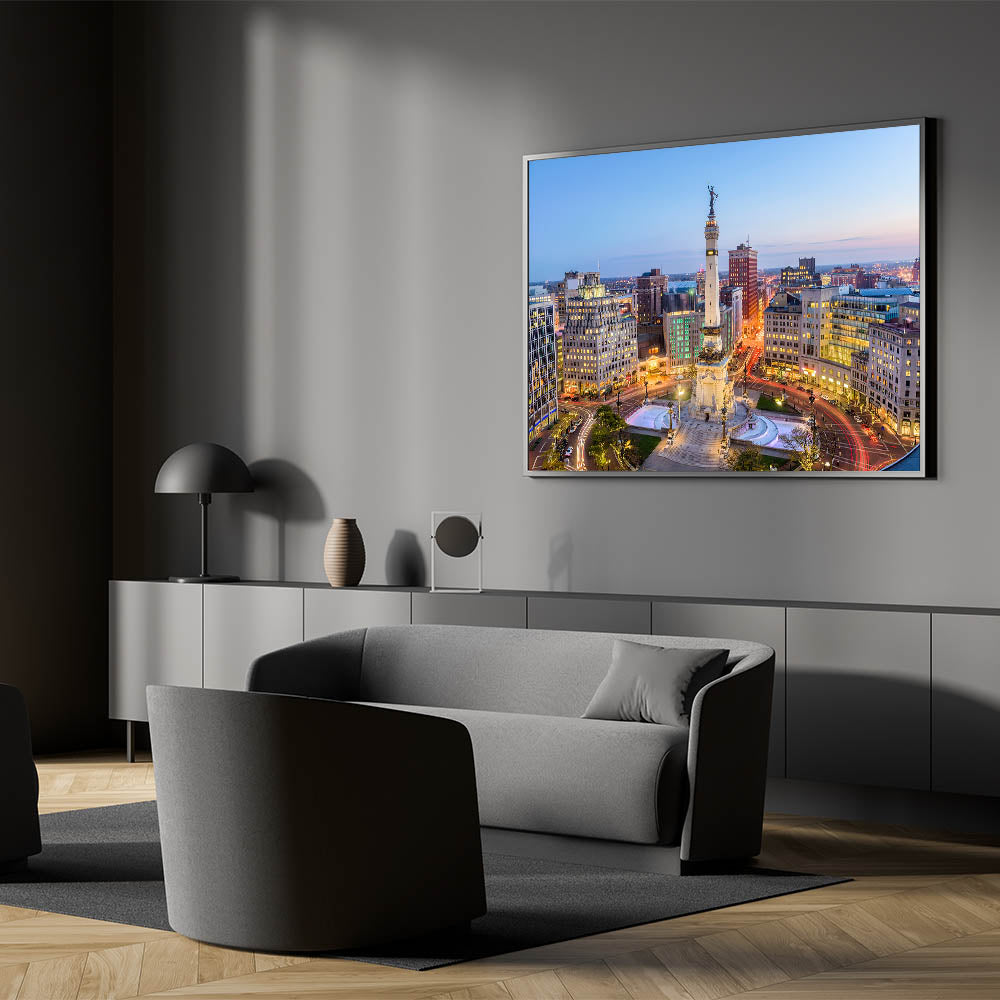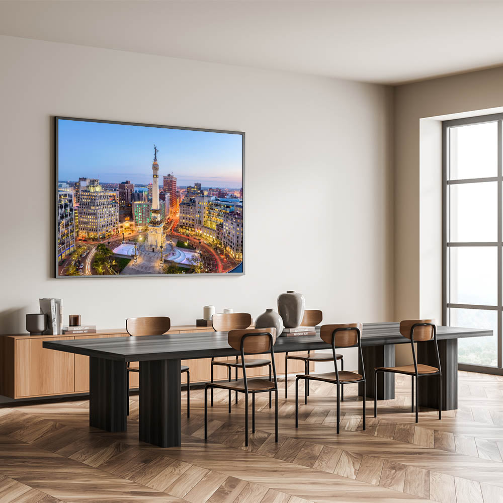 This piece of Indianapolis canvas art is more than just a picture; it's a statement of love for the city's unique skyline and architectural charm. Ideal for anyone looking to bring the vibrant energy of Indianapolis into their living space, this artwork is sure to impress. Enhance your home with this elegant Indianapolis downtown art, and enjoy the beauty of the city every day.