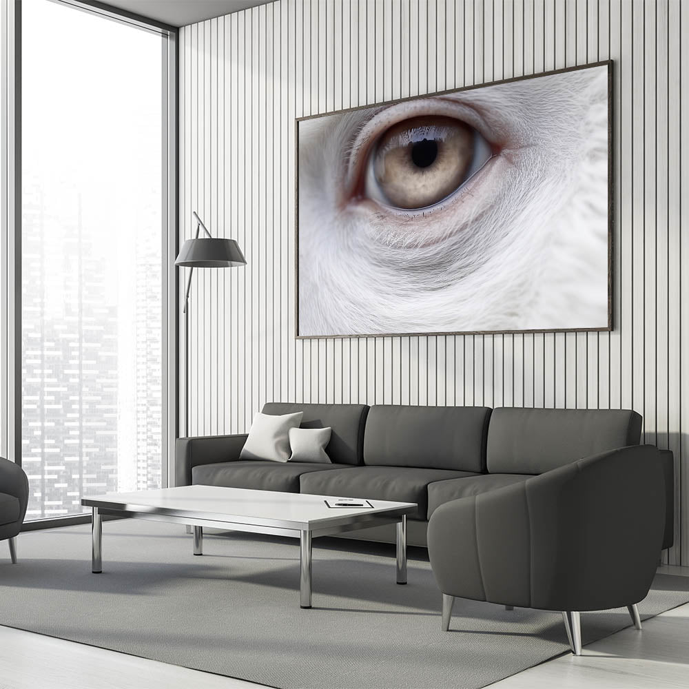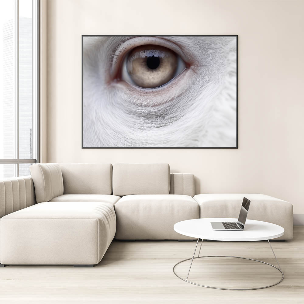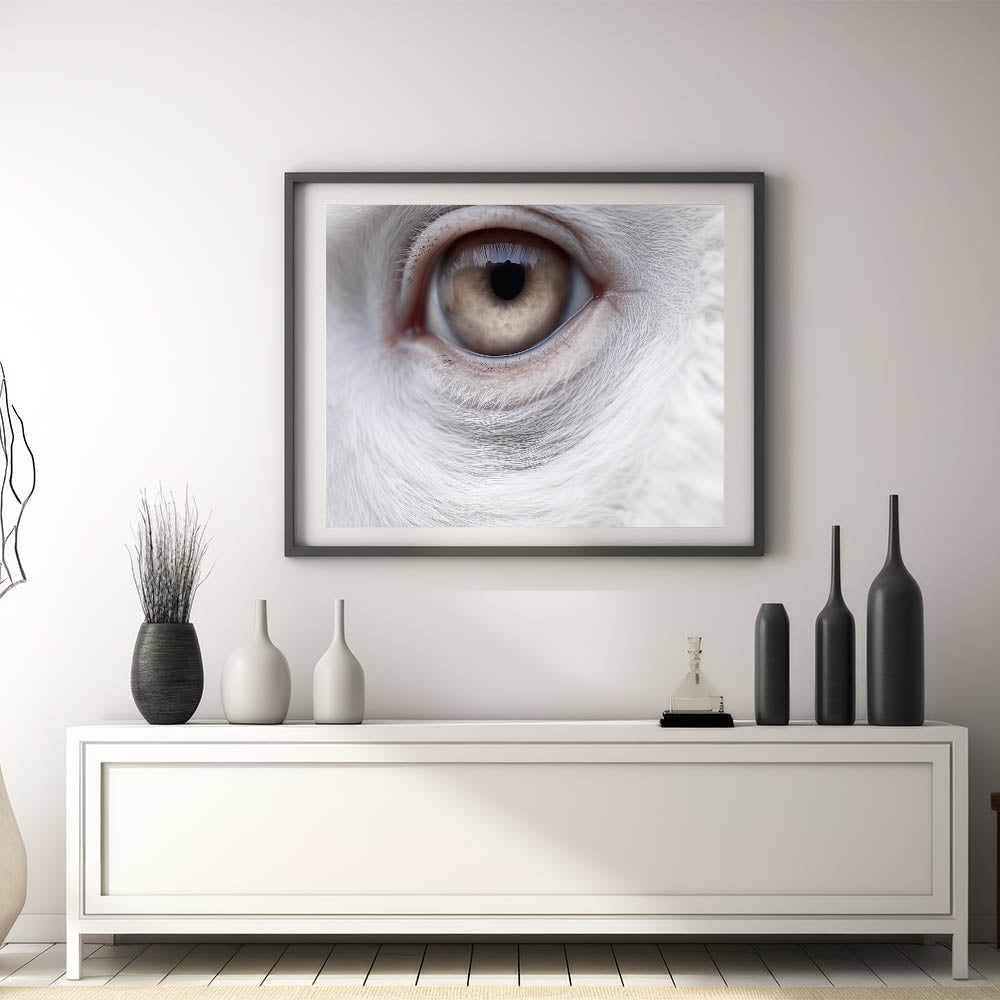 This Intricate Animal Eye Wall Art provides a mesmerizing close-up of an animal's eye, revealing the fine details of the eye and surrounding fur. The sharp contrast between the soft white fur and the deep, detailed eye creates a sense of mystery and wonder, making this print perfect for those who appreciate detailed wildlife photography. Whether you're looking to add a subtle touch of nature to your home or enhance your décor with something unique, this stunning close-up print is an excellent choice.