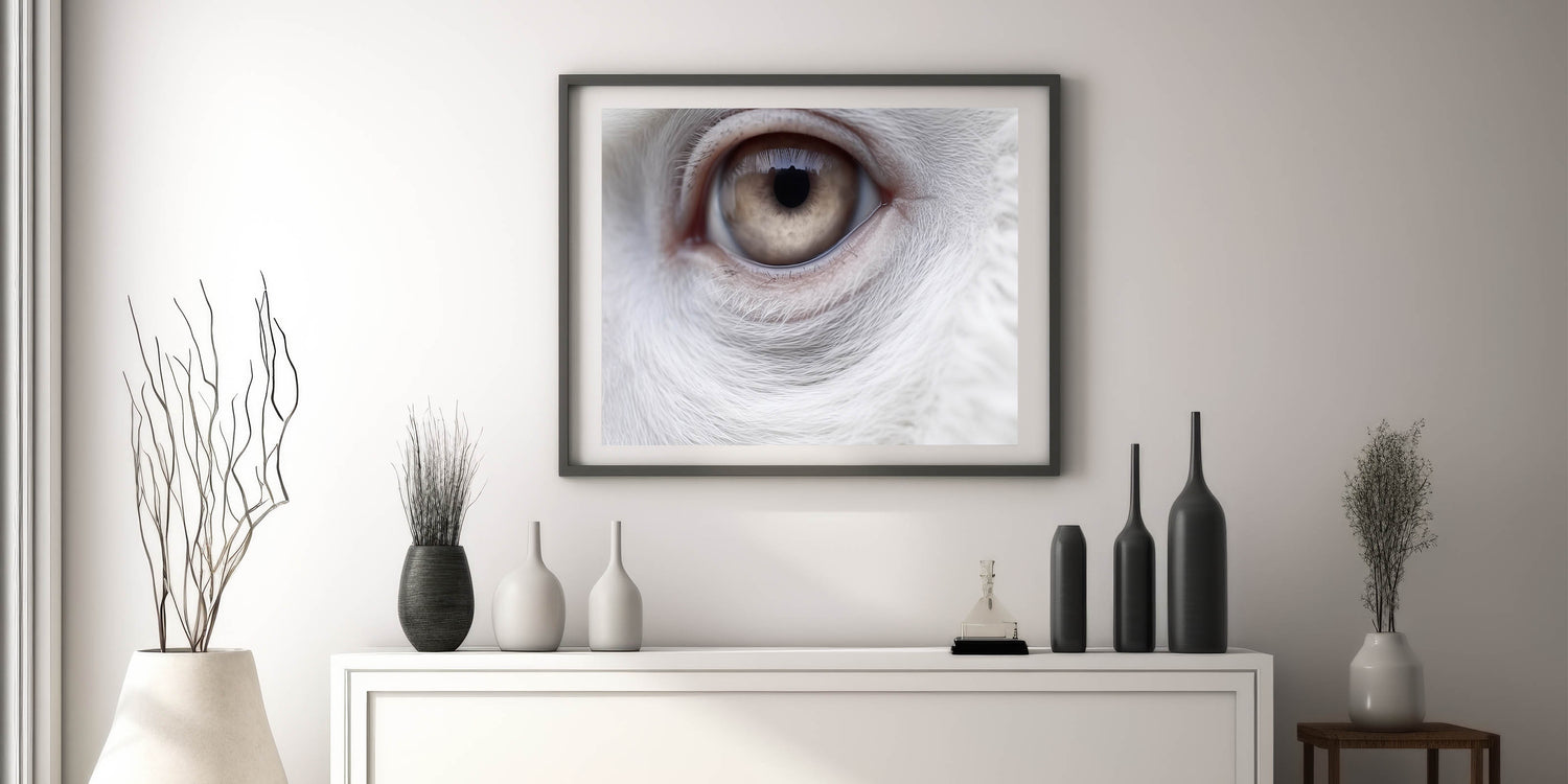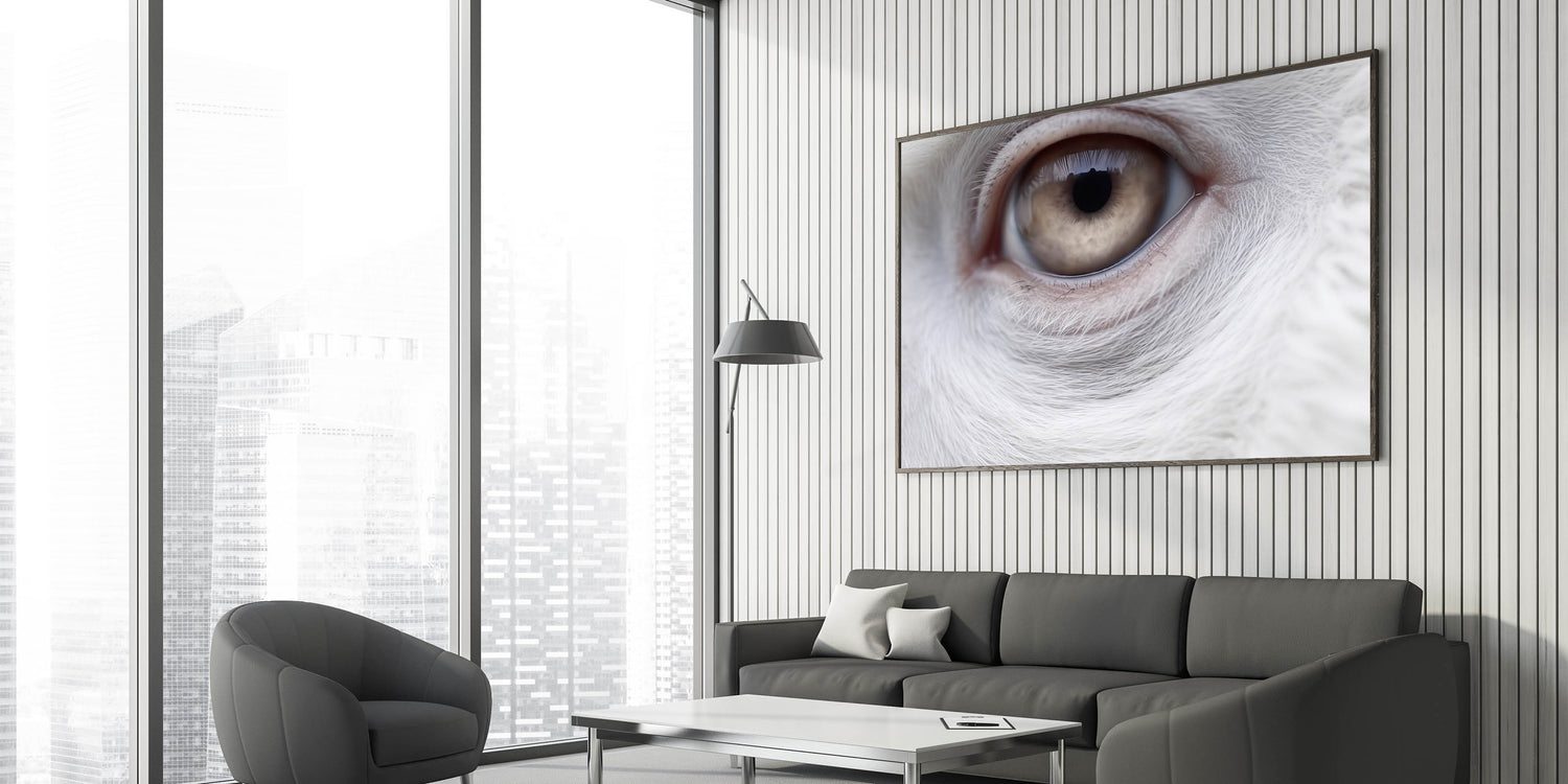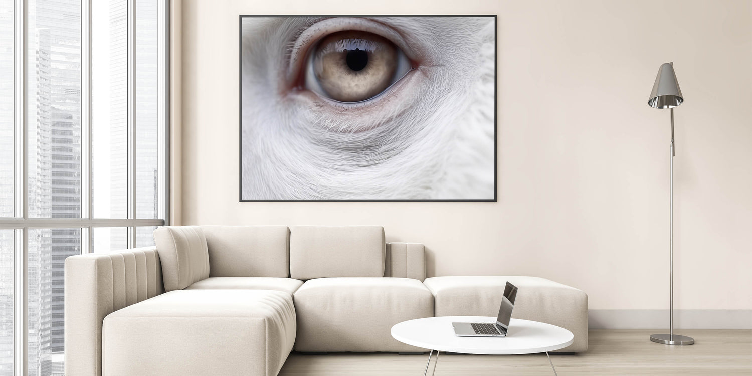 This Intricate Animal Eye Wall Art provides a mesmerizing close-up of an animal's eye, revealing the fine details of the eye and surrounding fur. The sharp contrast between the soft white fur and the deep, detailed eye creates a sense of mystery and wonder, making this print perfect for those who appreciate detailed wildlife photography. Whether you're looking to add a subtle touch of nature to your home or enhance your décor with something unique, this stunning close-up print is an excellent choice.