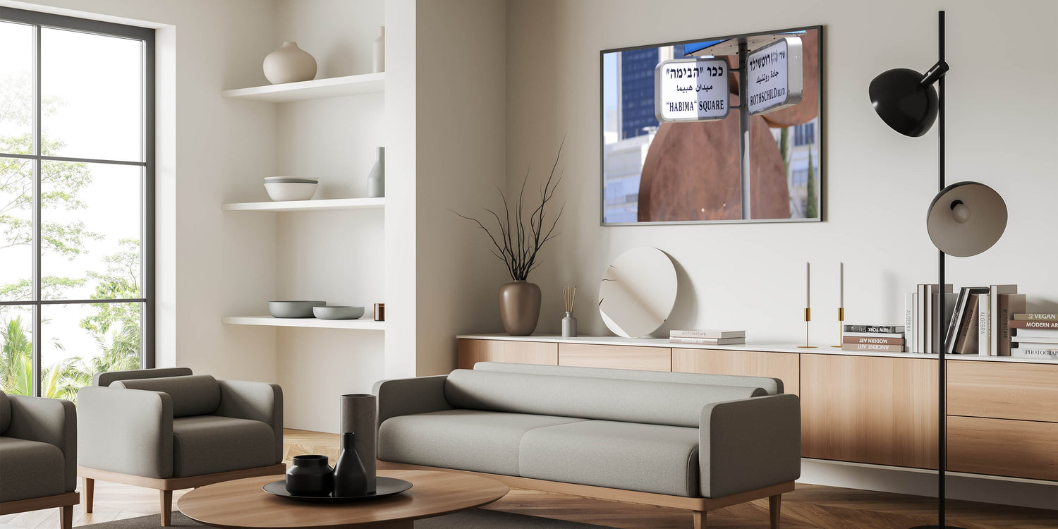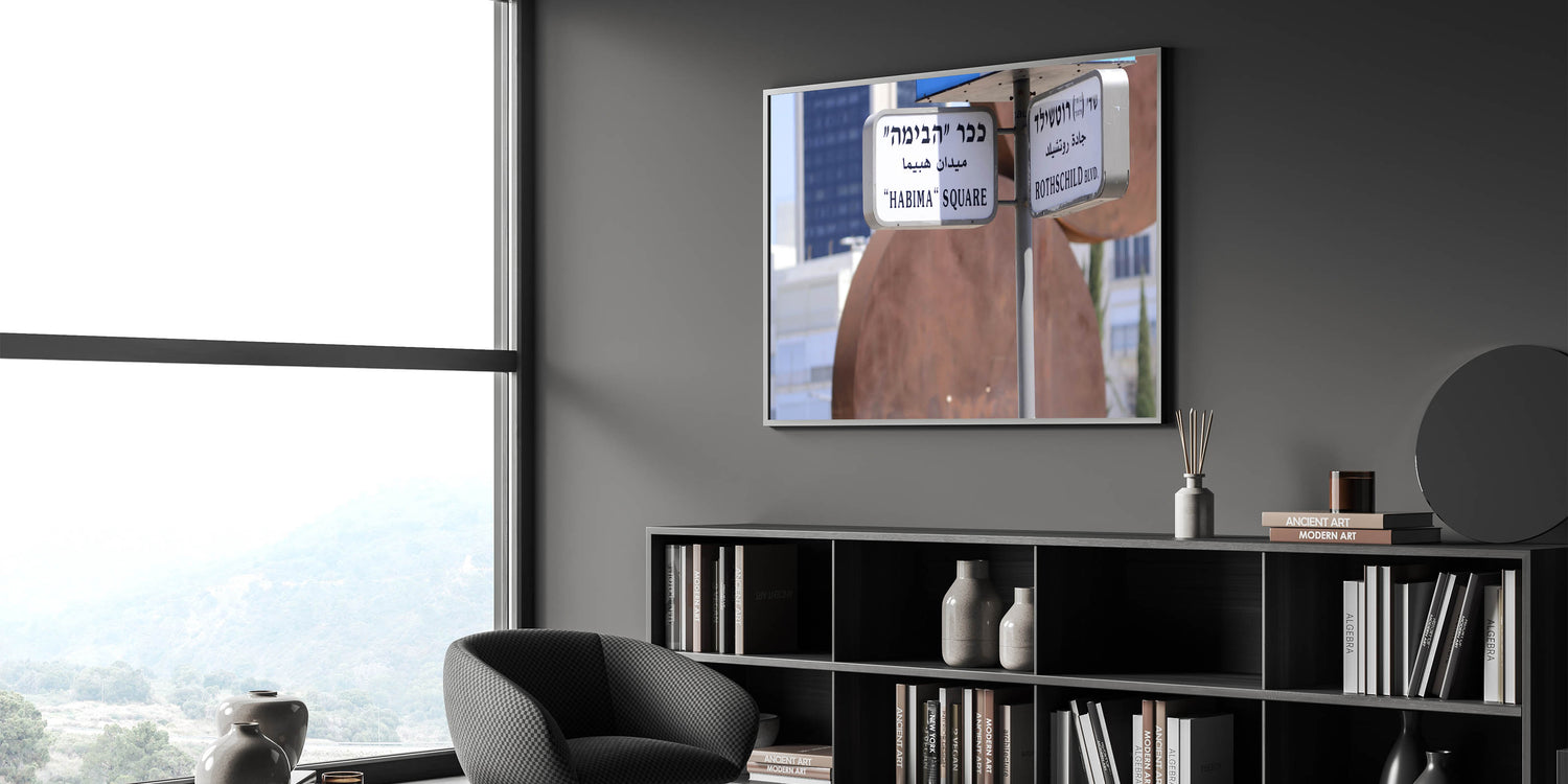 This Tel Aviv street sign artwork is perfect for anyone who loves urban landscapes, cultural landmarks, and city photography. Whether for your home, office, or gallery, this piece adds a touch of Israeli history and modernity to any room.