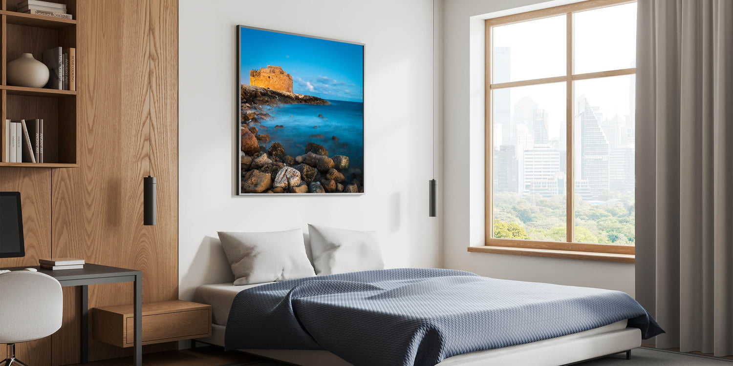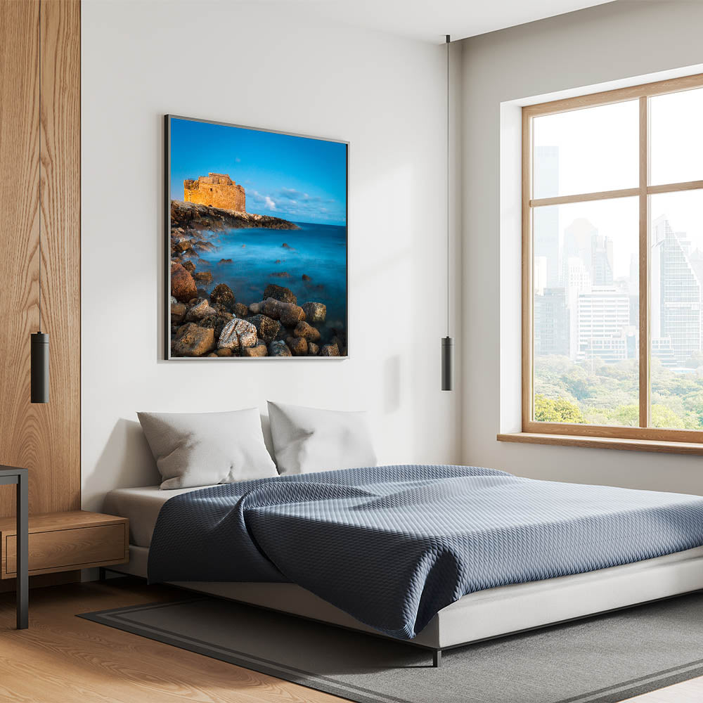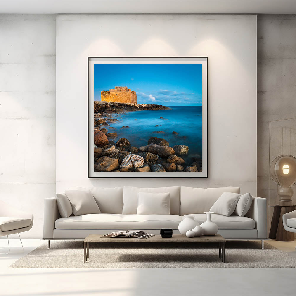 Explore the enchanting beauty of Larnaca with our "Mystical Castle Seascape" wall art, a striking addition to our Cyprus Scenery By Region collection. This piece captures a timeless moment at a historic castle set against a dreamy seascape, perfect for any lover of Mediterranean and Cypriot charm.