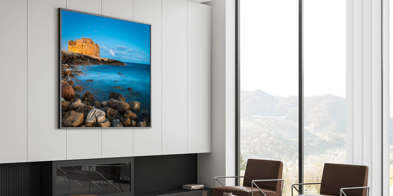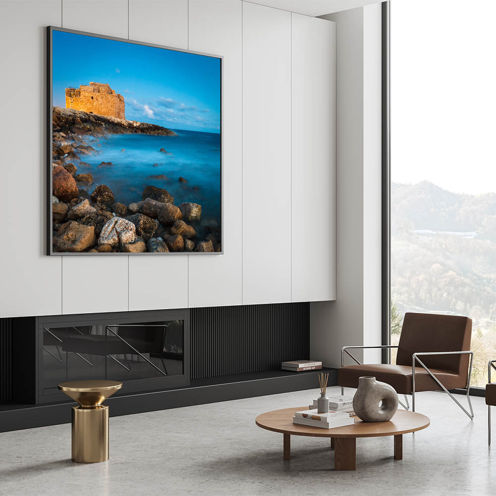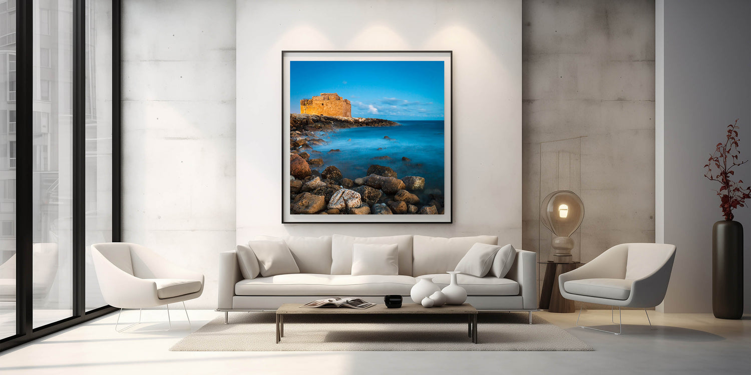 Explore the enchanting beauty of Larnaca with our "Mystical Castle Seascape" wall art, a striking addition to our Cyprus Scenery By Region collection. This piece captures a timeless moment at a historic castle set against a dreamy seascape, perfect for any lover of Mediterranean and Cypriot charm.