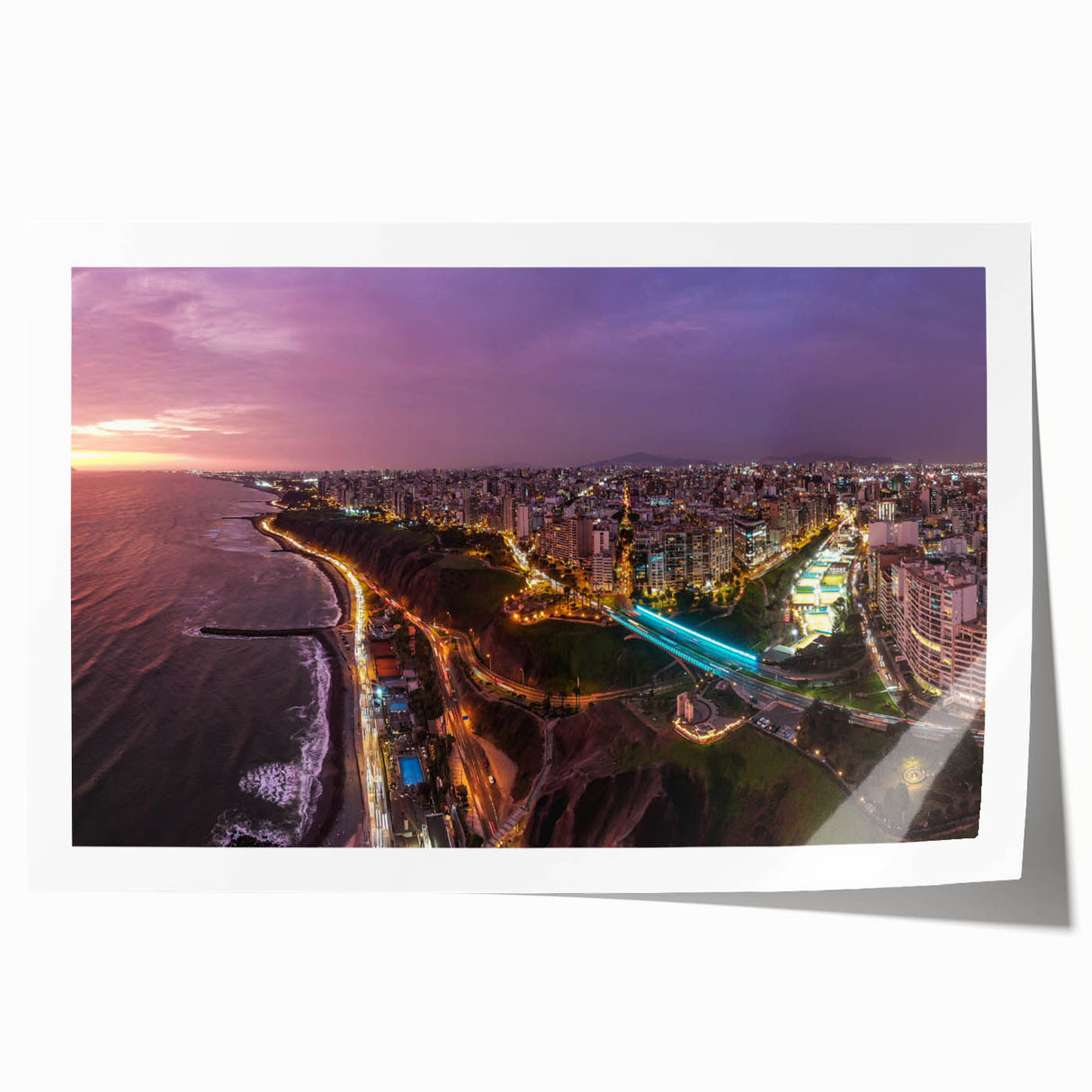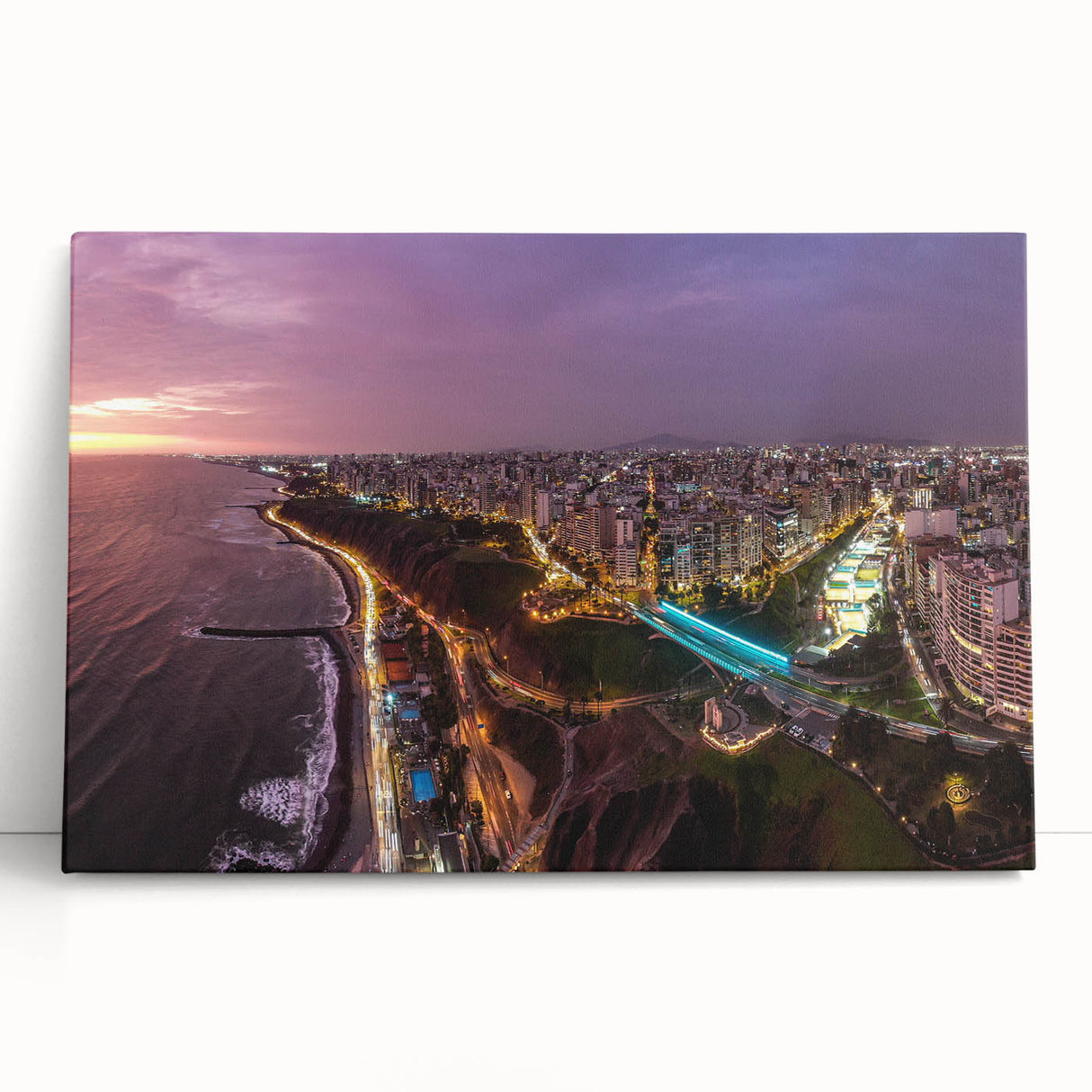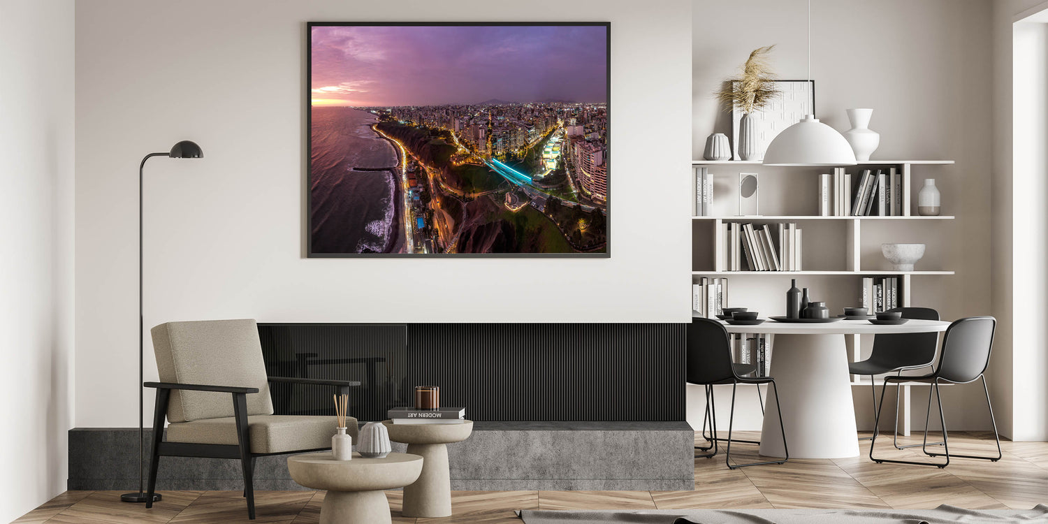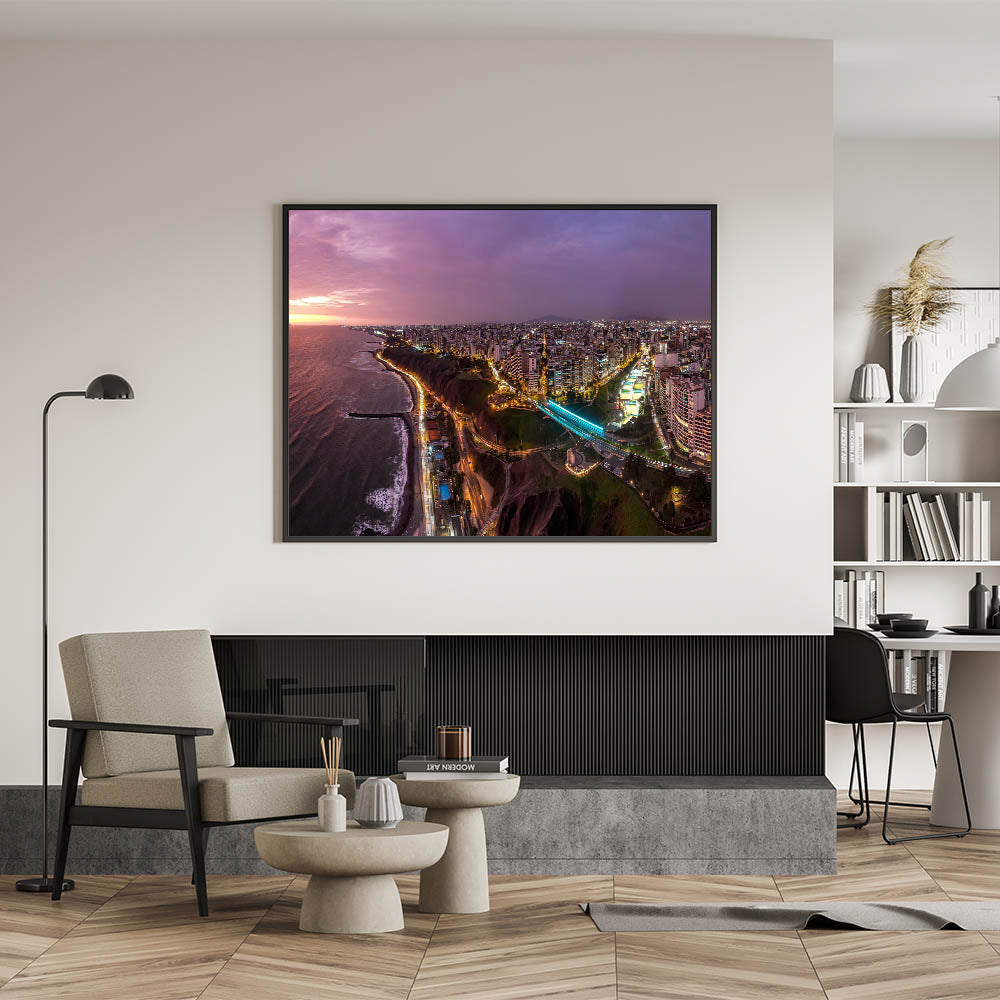 Perfect for urban enthusiasts and lovers of travel, this piece adds a cosmopolitan flair to any space, inviting viewers to experience the allure of Lima from a spectacular vantage point.
