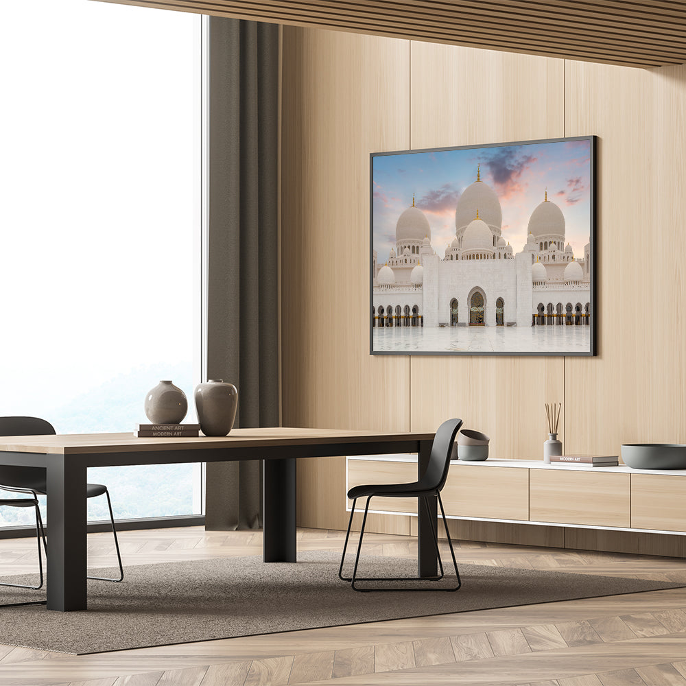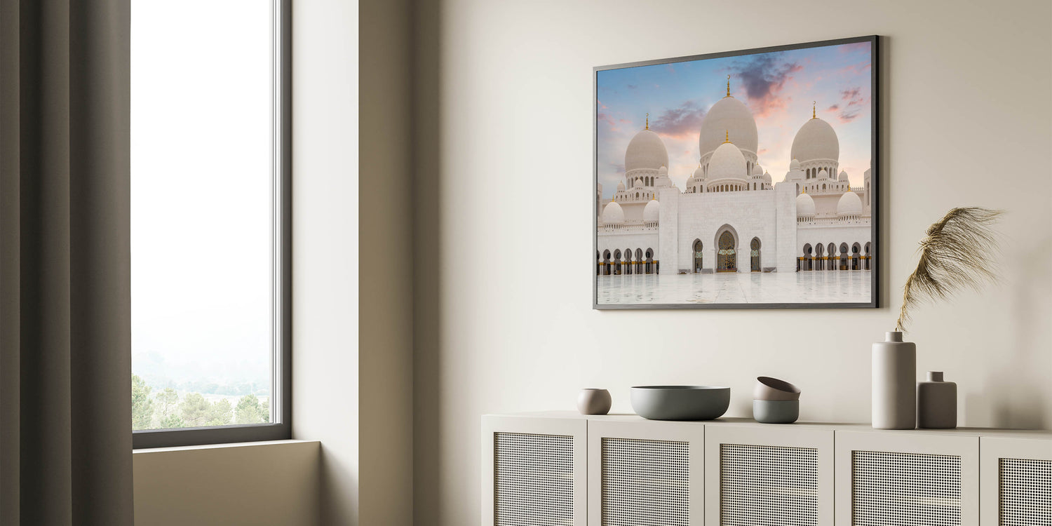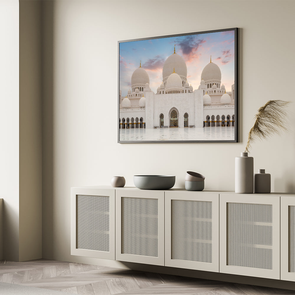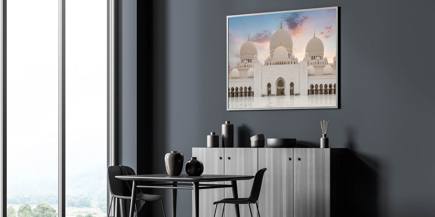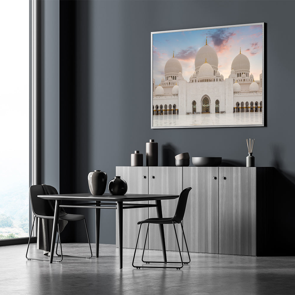 Transform your space with the grandeur of this majestic domes wall art. Featuring the stunning white domes of an architectural masterpiece, this artwork captures the beauty and elegance of classical design. The soft hues of the sunset sky enhance the purity of the white marble domes, making it a perfect centerpiece for any room. This artwork is ideal for those who appreciate fine architecture and the serene beauty of sacred structures.