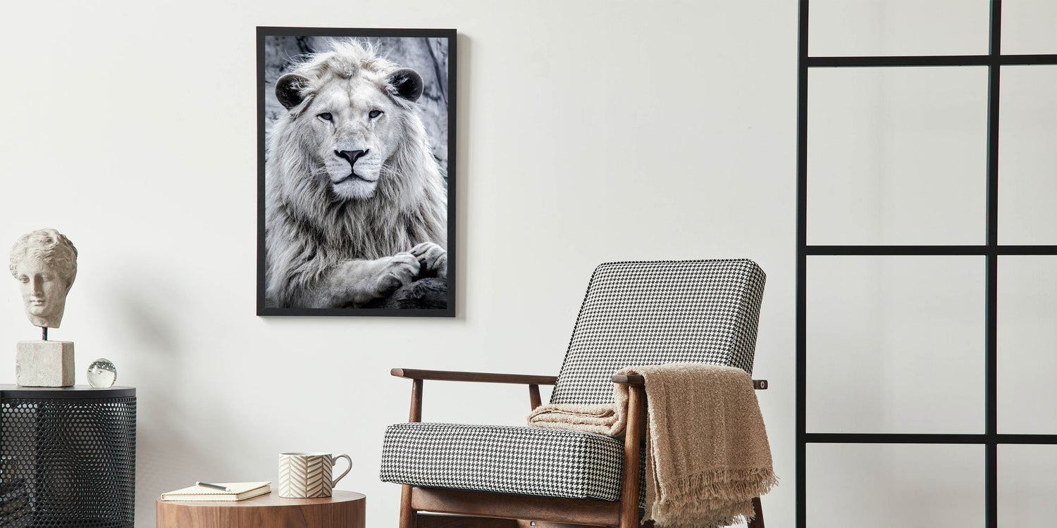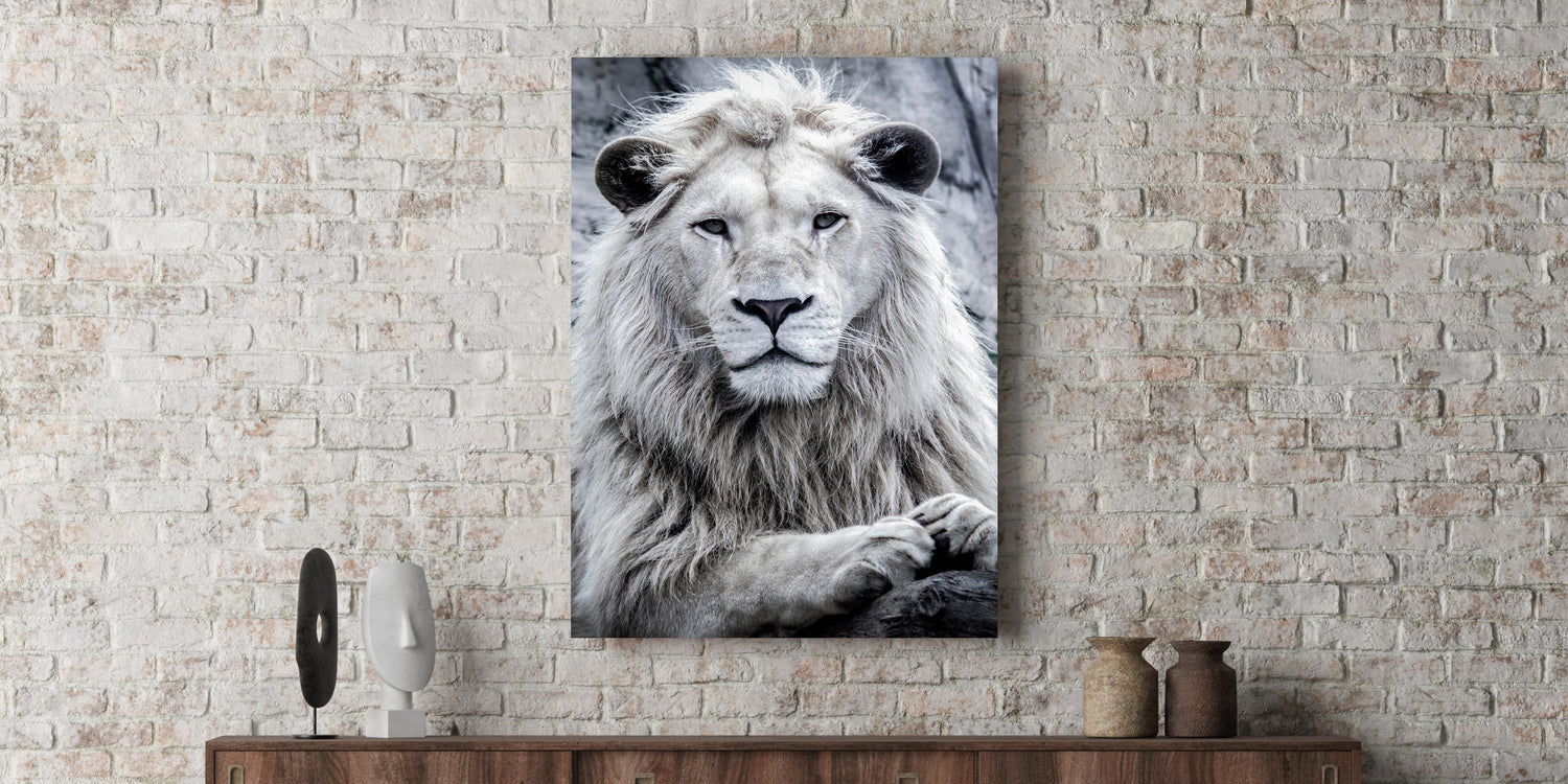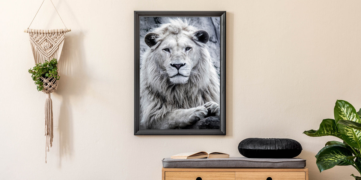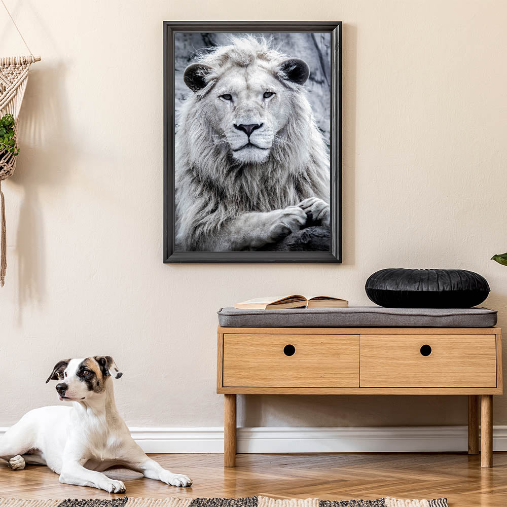 Transform your space with this stunning lion wall art, capturing the regal presence of a majestic white lion. This artwork is perfect for those who appreciate the beauty of wildlife and the power of nature, bringing a touch of the wild into your home or office. The high-definition print highlights the lion’s intricate details, from the intense gaze to the flowing mane, offering a lifelike representation of this incredible creature.
