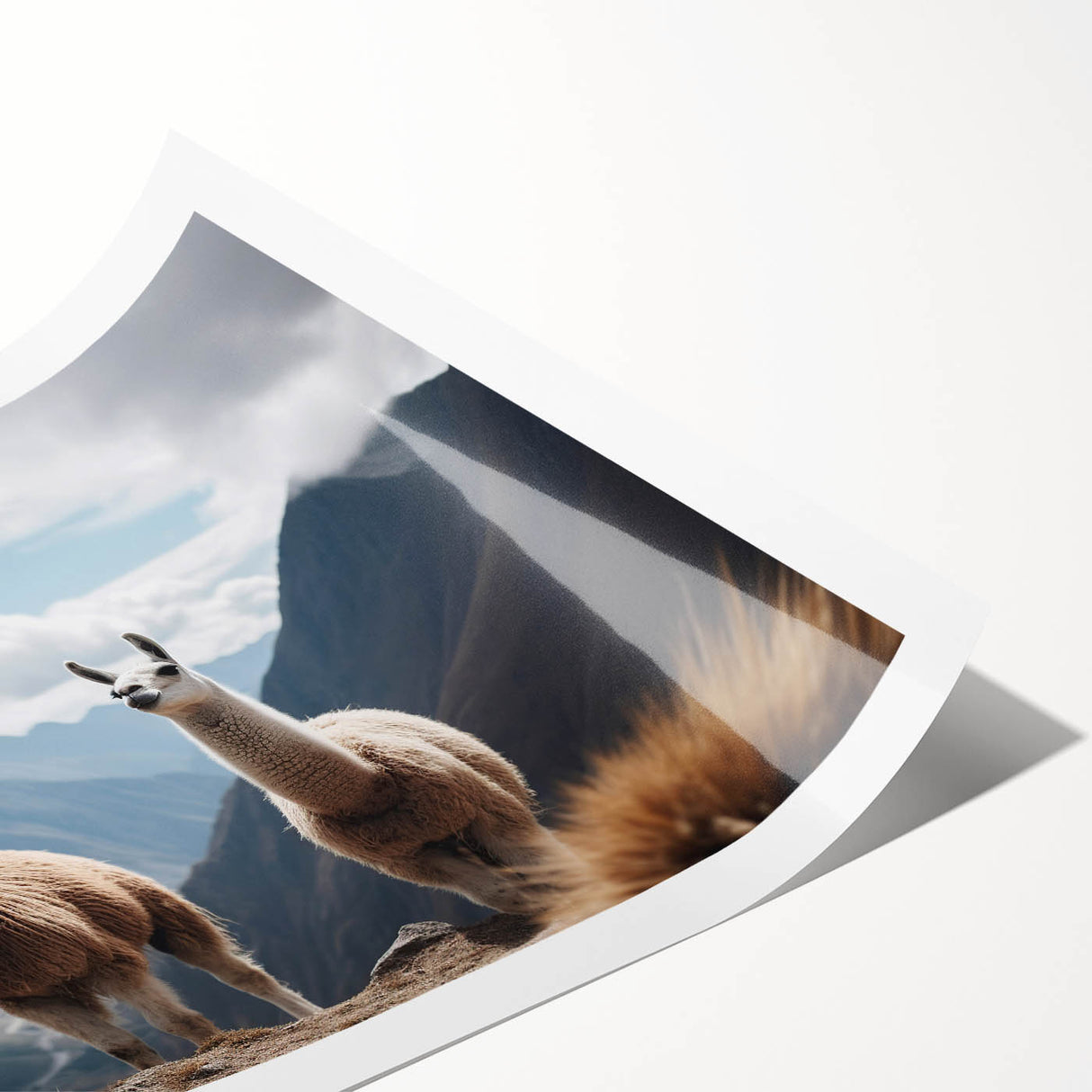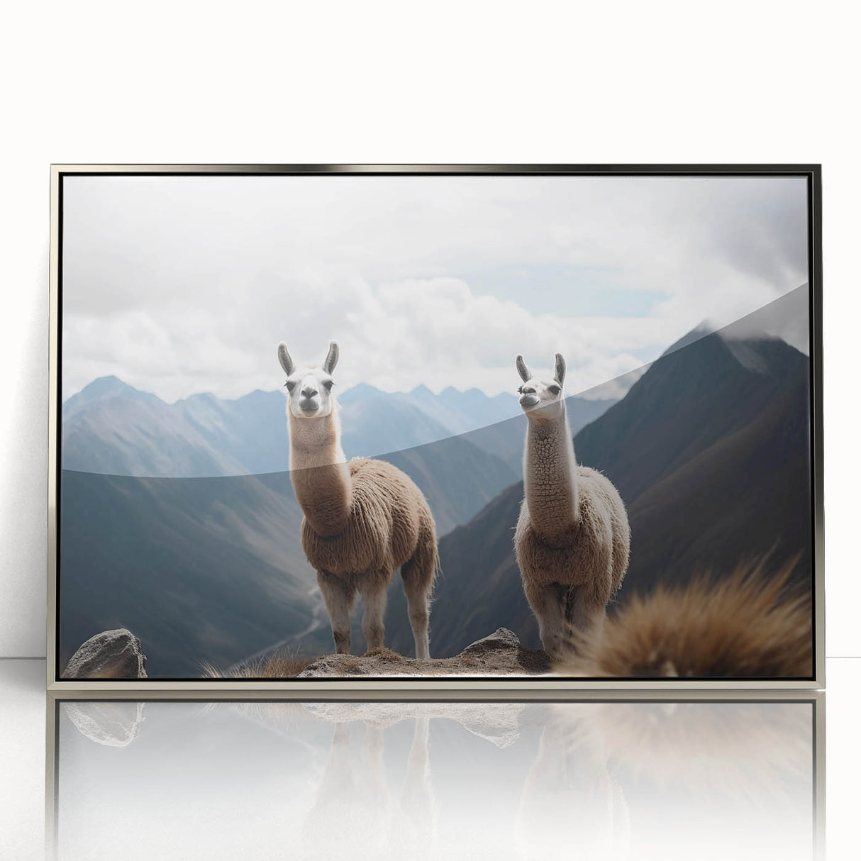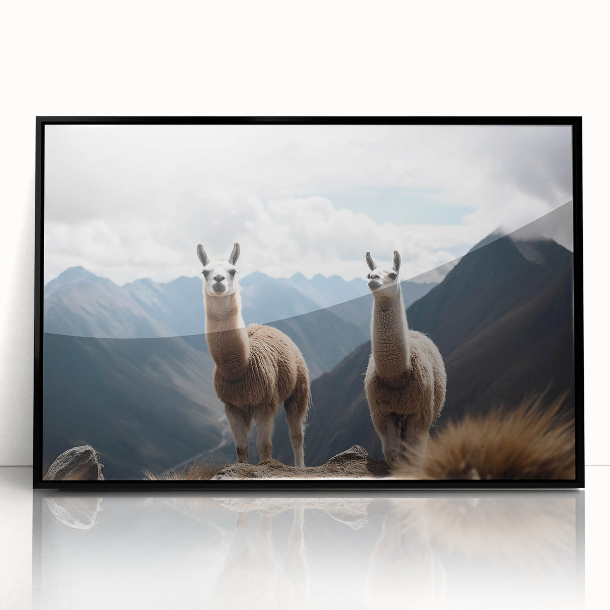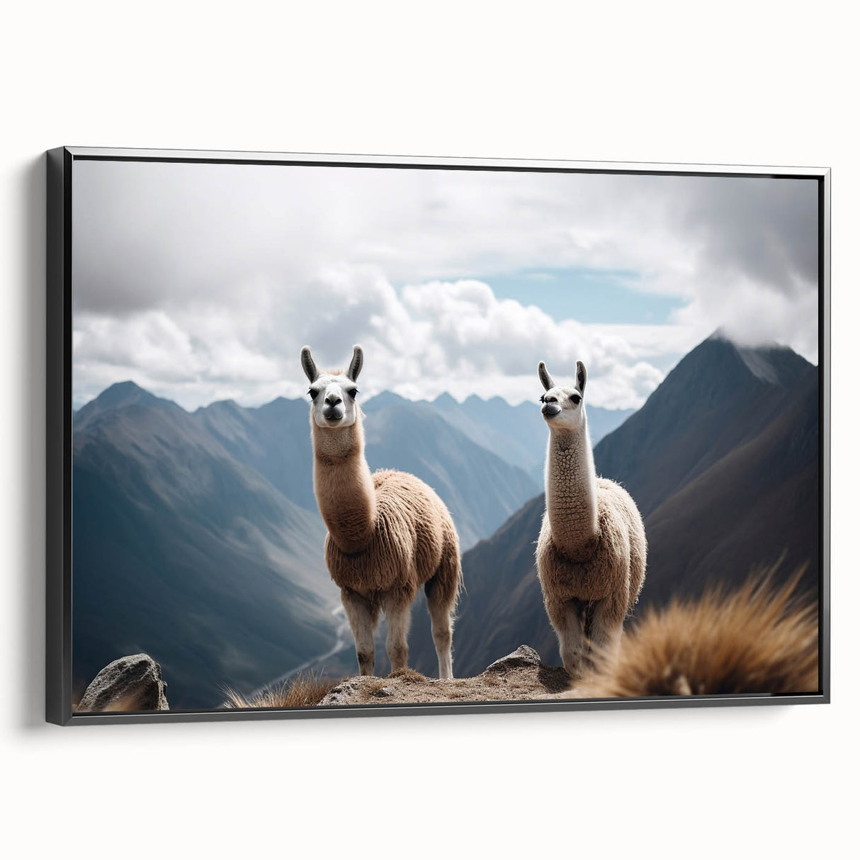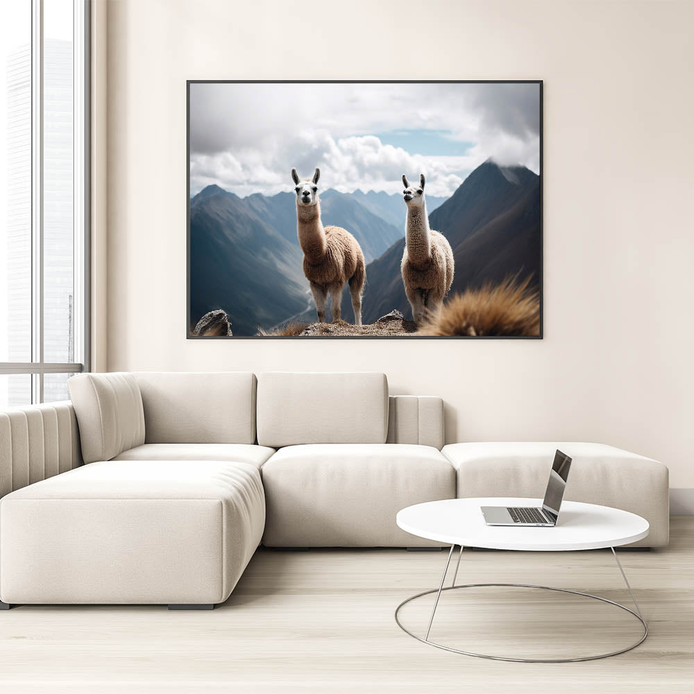 - Intriguing Composition: The llamas are perfectly framed by the vast, cloud-kissed peaks of the Andes, bringing a piece of the high altitude serenity into your space.