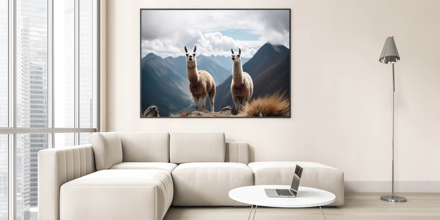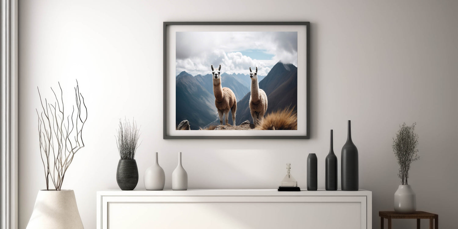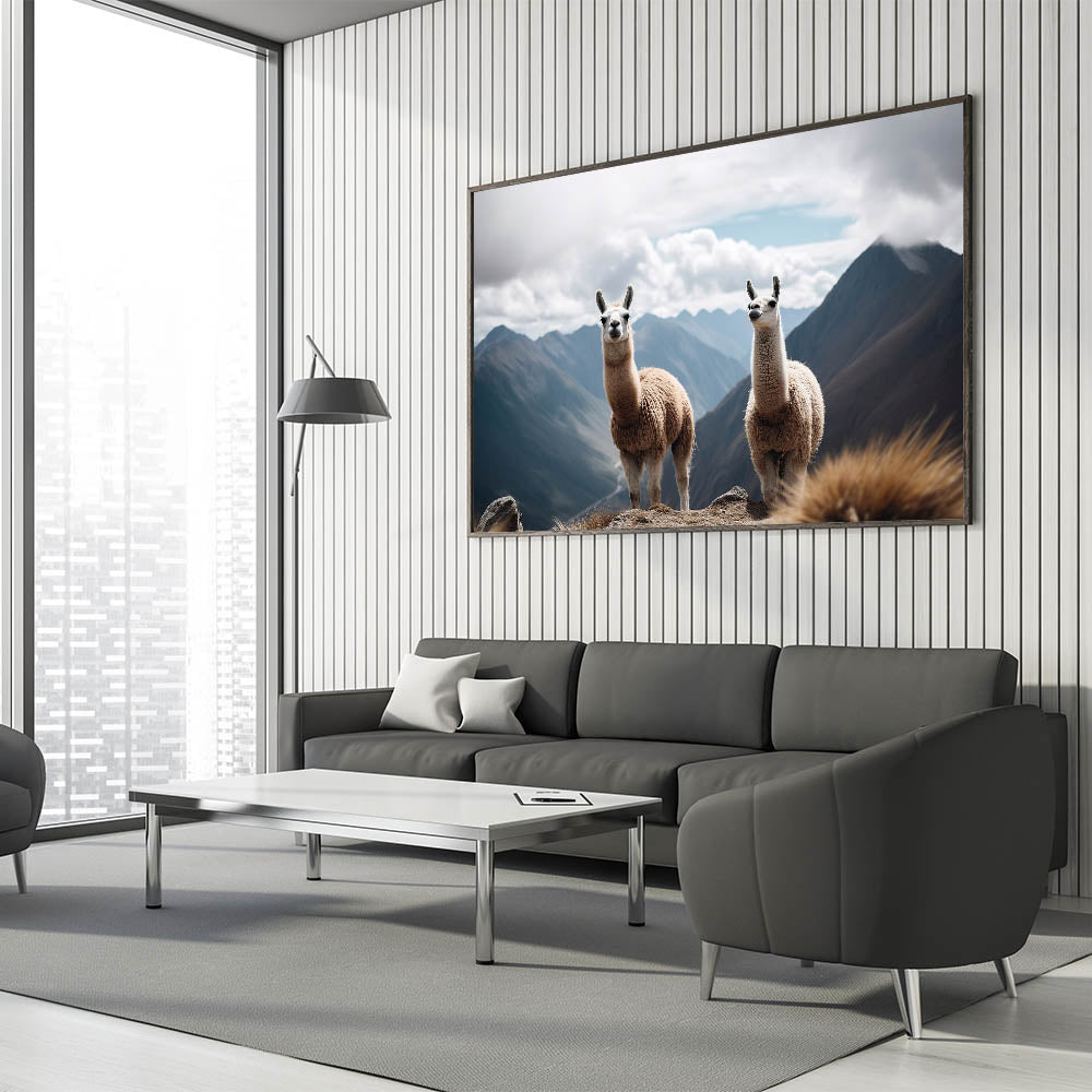 Add a touch of the Andean spirit to your décor with our "Majestic Llamas in Andean Mountains Canvas." This captivating wall art features two llamas, iconic symbols of the Peruvian highlands, set against the expansive backdrop of the Andes’ rugged terrain.