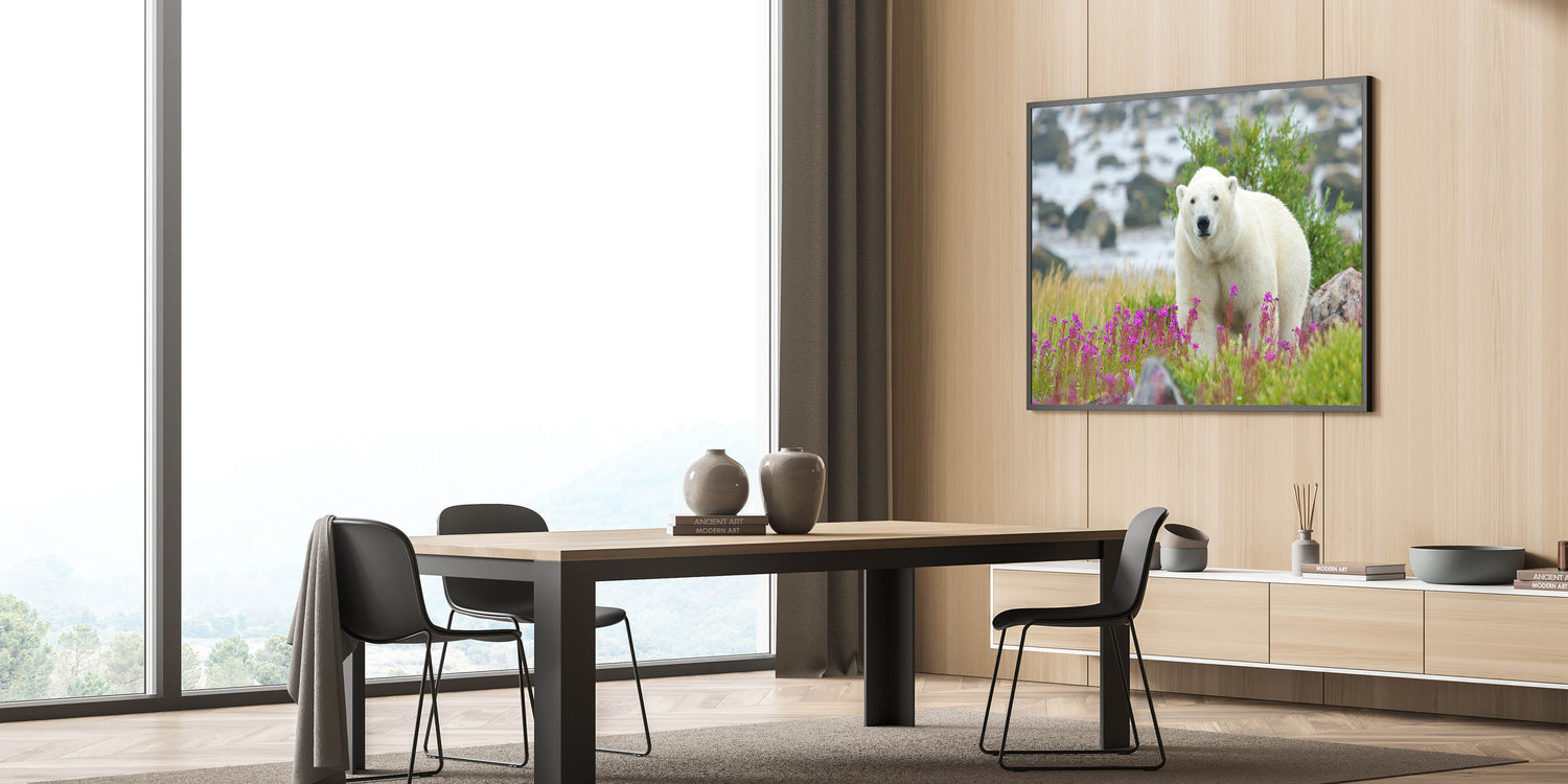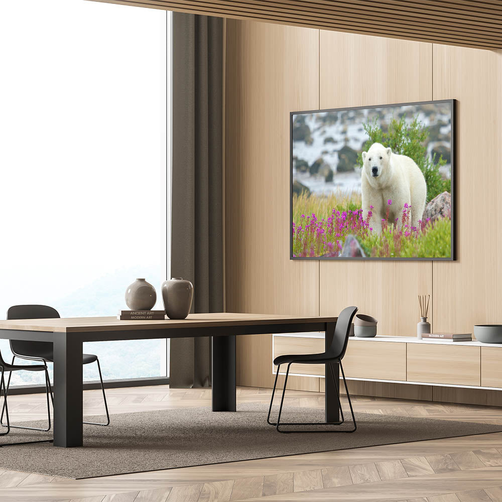 Capture the beauty of Manitoba’s wildlife with this stunning wall art, featuring a majestic polar bear amidst the vibrant natural scenery. Perfect for nature lovers, this piece of art highlights the serene beauty of Manitoba landscapes, offering a glimpse into the wilderness where flora and fauna coexist harmoniously.