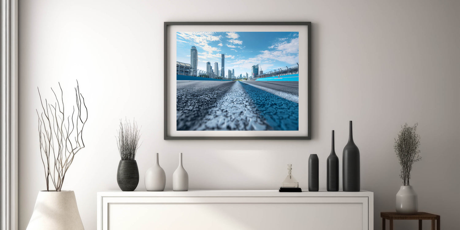 Experience the thrill of speed and the beauty of Miami’s skyline with this unique Miami Cityscape Art. This striking piece combines the dynamic perspective of a racing track with the stunning backdrop of downtown Miami’s modern architecture. Perfect for car enthusiasts and city lovers alike, this artwork brings energy and excitement to any space, making it ideal for home, office, or garage decor.