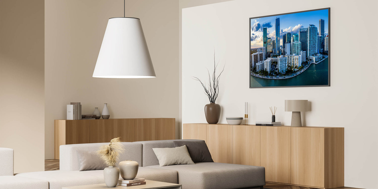 • Vivid Design: Showcases the colorful and modern Miami skyline in a stunning high-definition print.