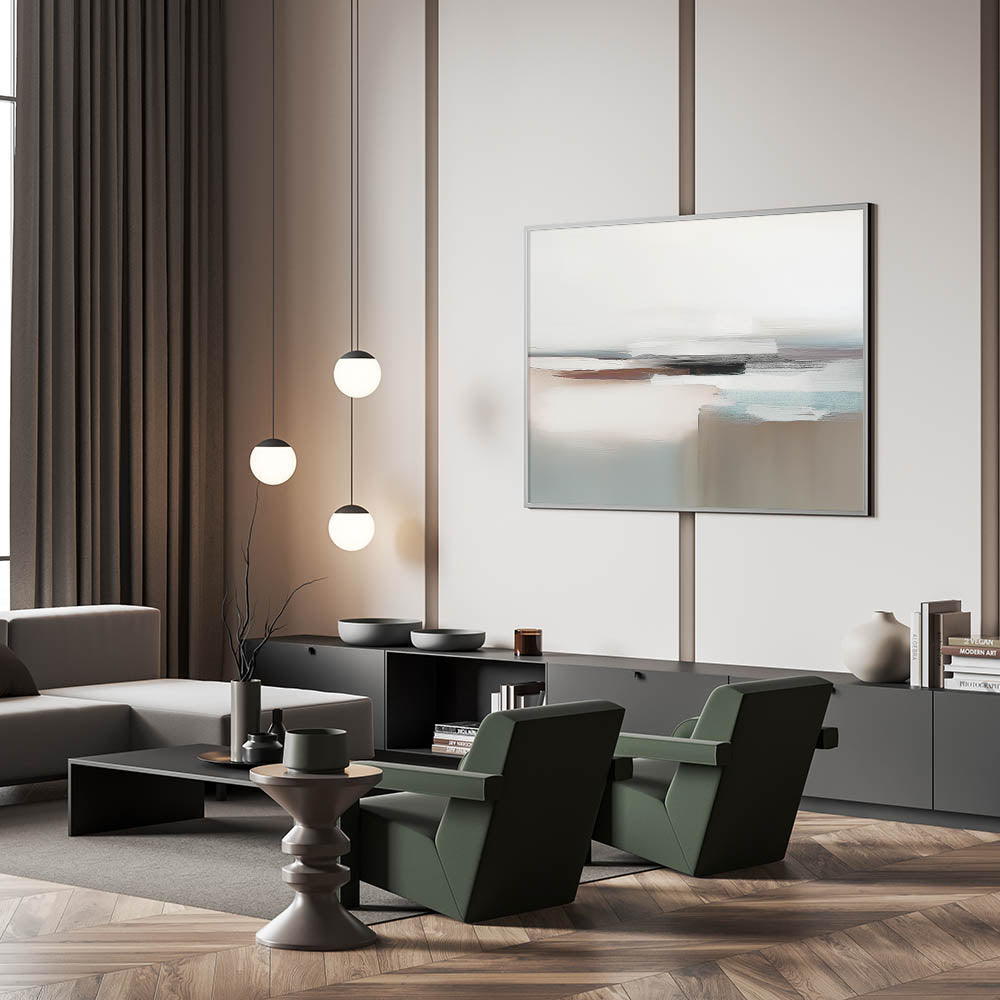 This abstract landscape art is perfect for those who appreciate the beauty of simplicity and the calming influence of nature. Its neutral tones and minimalist design make it a versatile addition to any decor, ideal for creating a serene and inviting atmosphere in your home or office.
