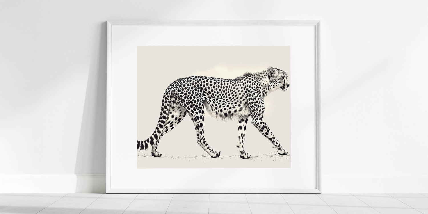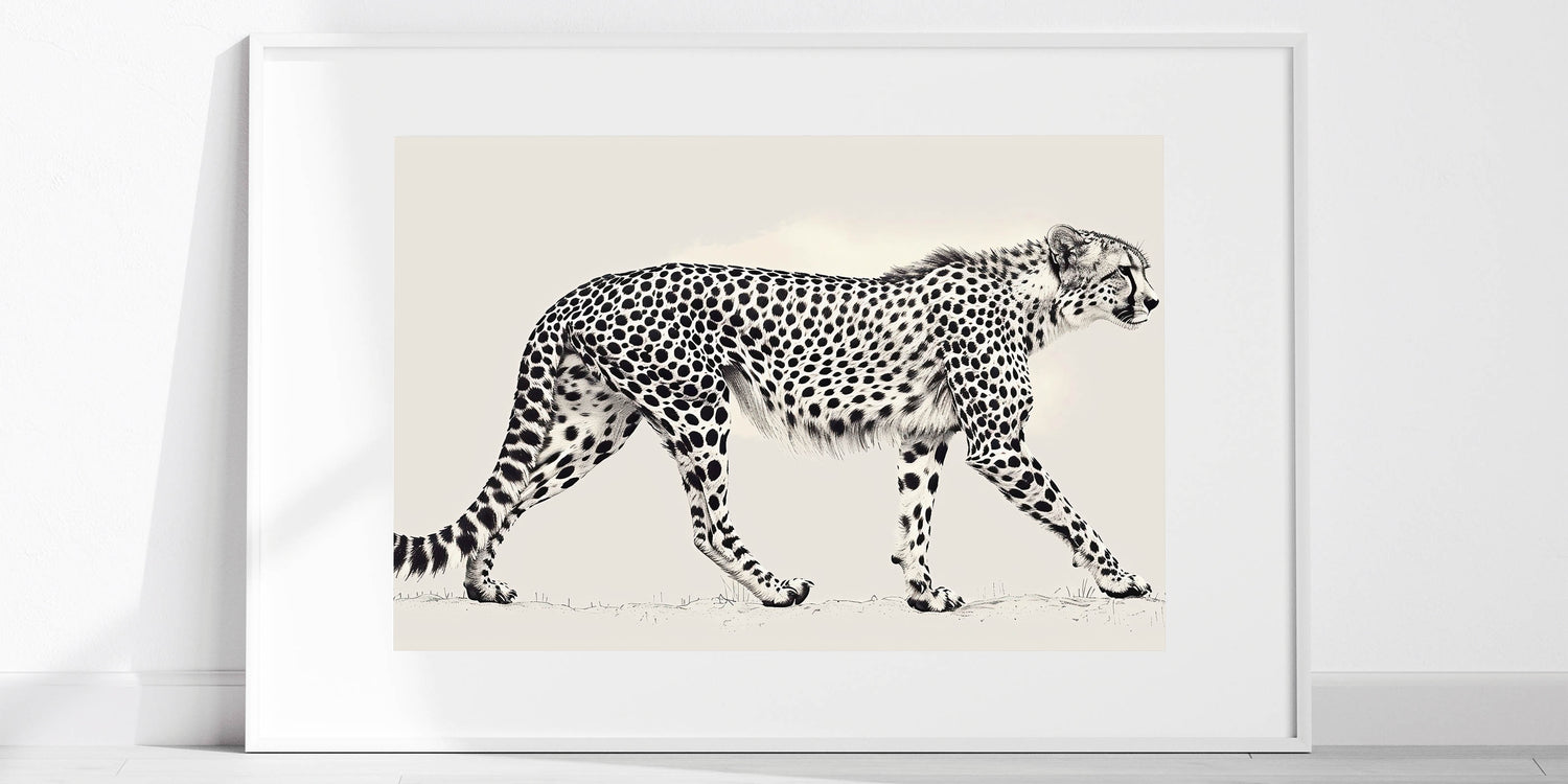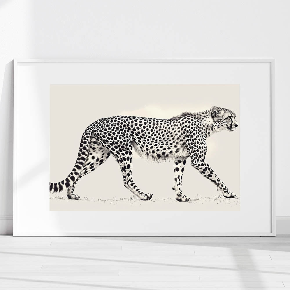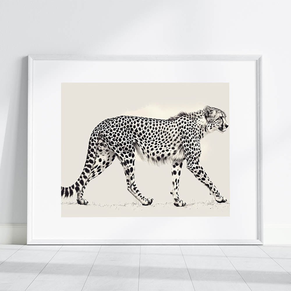 Enhance your space with the sleek and sophisticated design of our Minimalist Cheetah Wall Art. This artwork features a detailed, monochromatic illustration of a cheetah in motion, perfectly capturing its elegance and grace. The minimalist style is ideal for modern interiors, adding a touch of wildlife beauty without overwhelming the space.