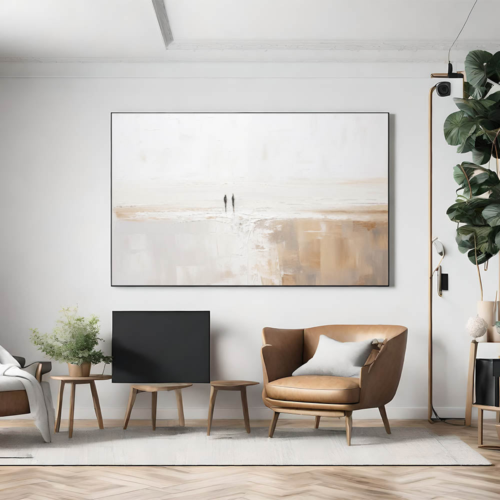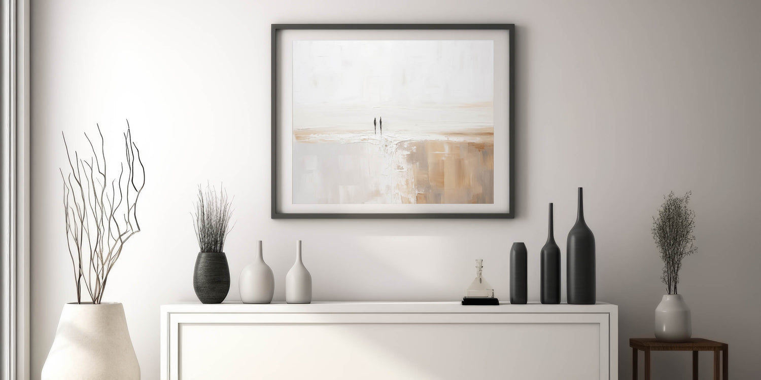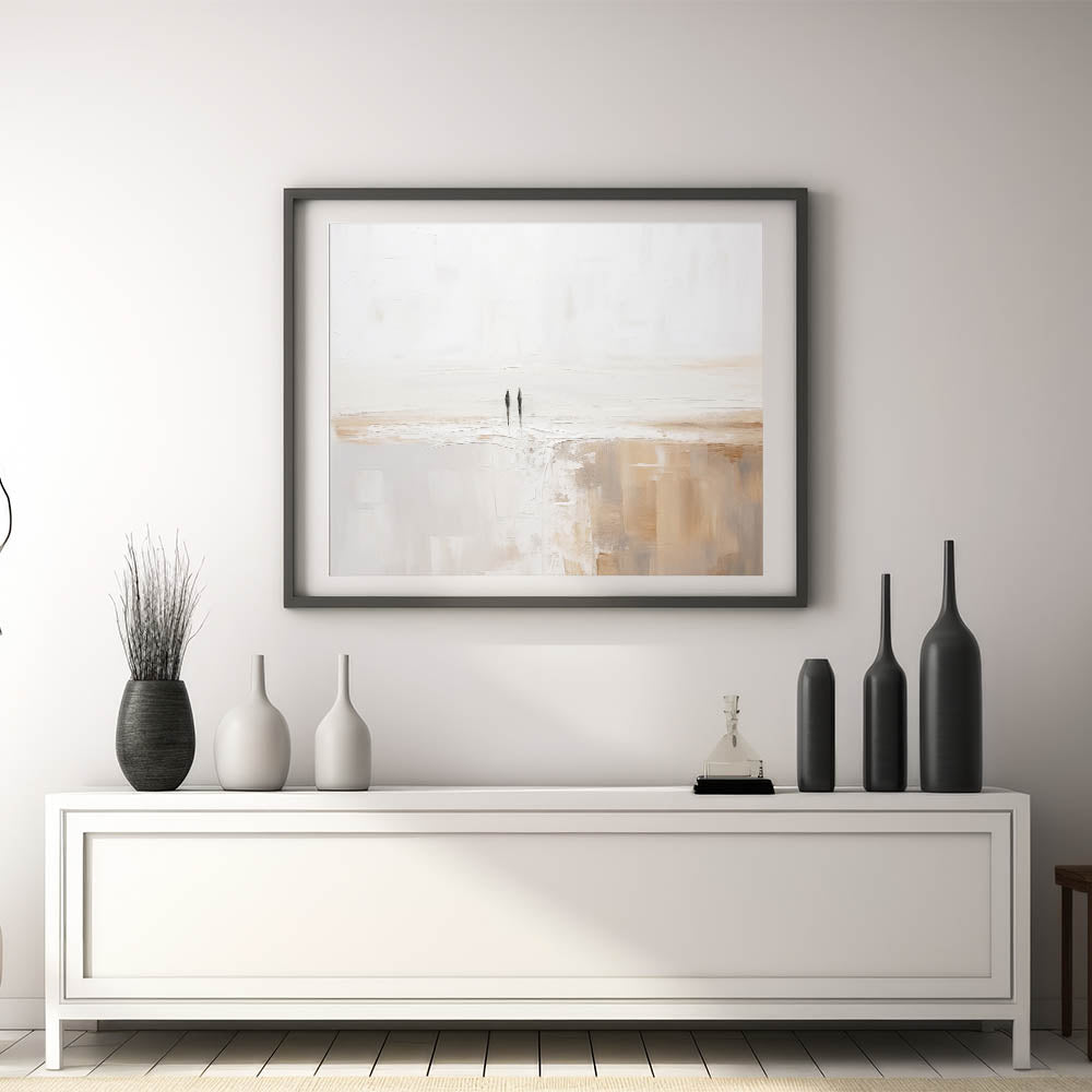 Experience the tranquility of simplicity with this stunning minimalist landscape art piece. This serene abstract canvas features a harmonious blend of soft, neutral tones, creating a peaceful and calming atmosphere in any room. The subtle texturing and gentle color palette evoke the beauty of a quiet, expansive landscape, making it an ideal addition to contemporary and modern interiors.