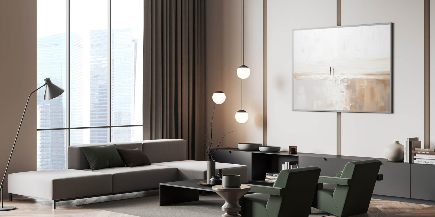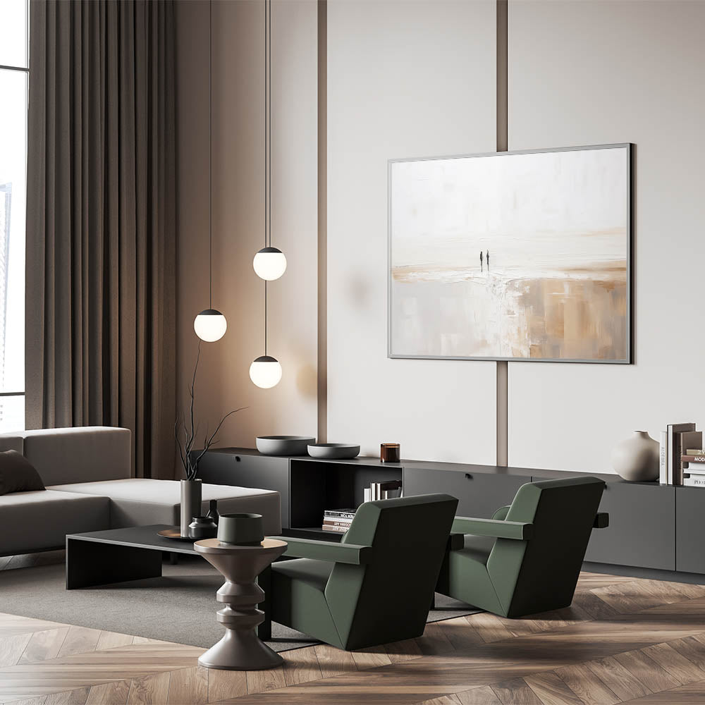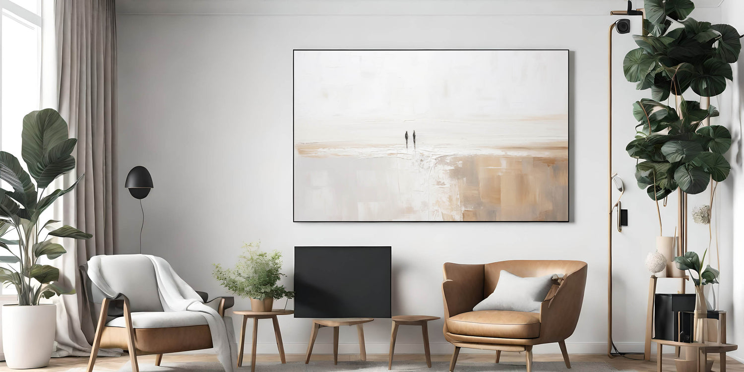 Experience the tranquility of simplicity with this stunning minimalist landscape art piece. This serene abstract canvas features a harmonious blend of soft, neutral tones, creating a peaceful and calming atmosphere in any room. The subtle texturing and gentle color palette evoke the beauty of a quiet, expansive landscape, making it an ideal addition to contemporary and modern interiors.