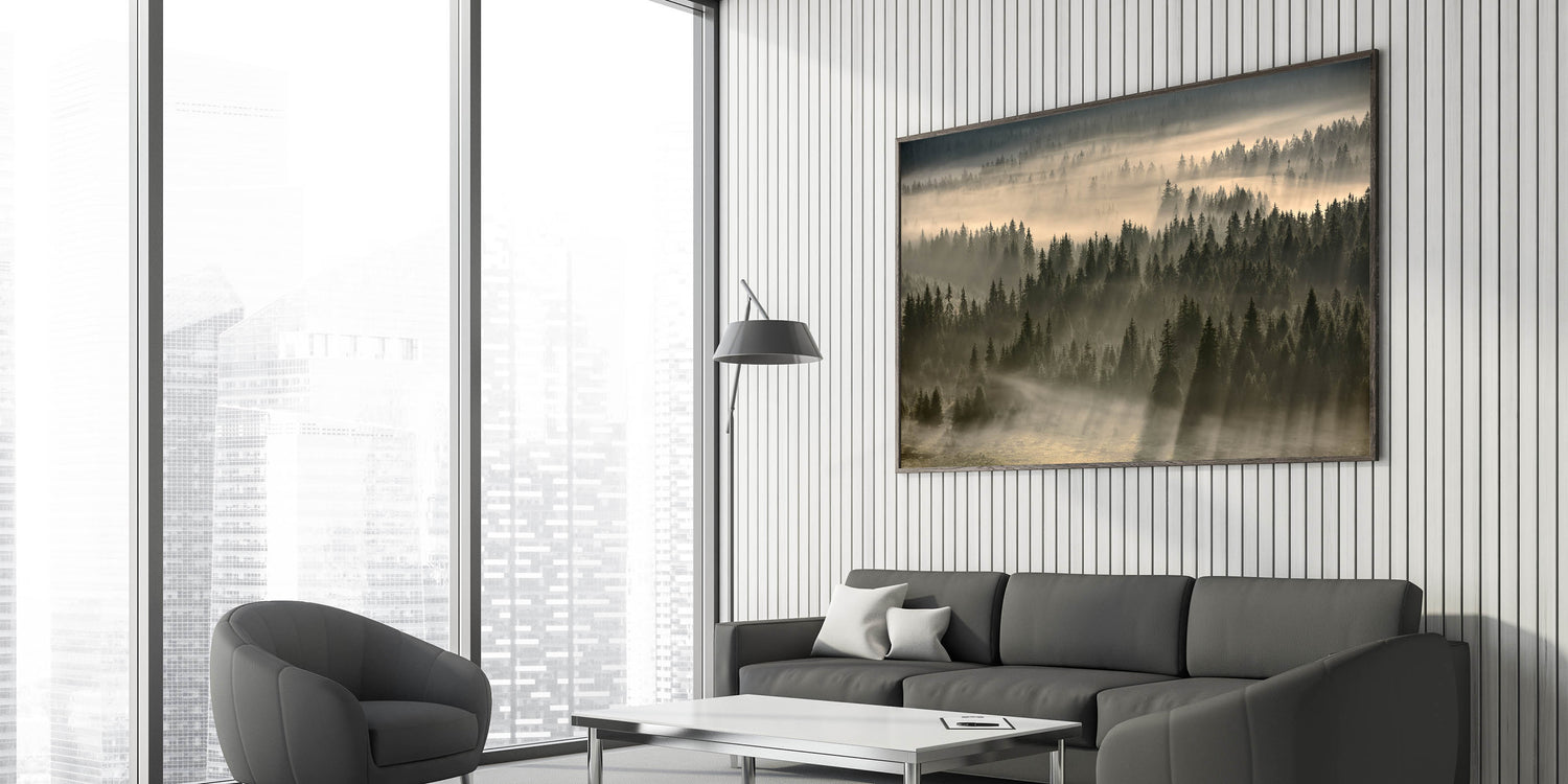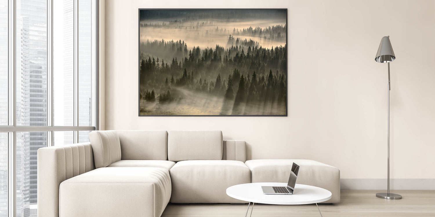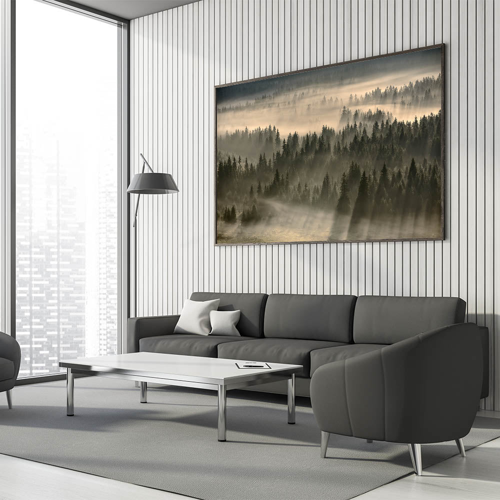 This misty forest print is perfect for those who appreciate the quiet beauty of nature and wish to create a serene, reflective space in their home.