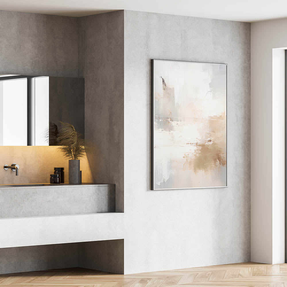 Enhance your living space with this modern abstract neutral wall art, a perfect blend of texture and subtle color. The artwork features a soothing palette of whites, beiges, and soft browns, with delicate brushstrokes that create a layered, textured effect. This minimalist design is ideal for adding a touch of elegance and serenity to any room, whether it’s your living room, bedroom, or office.