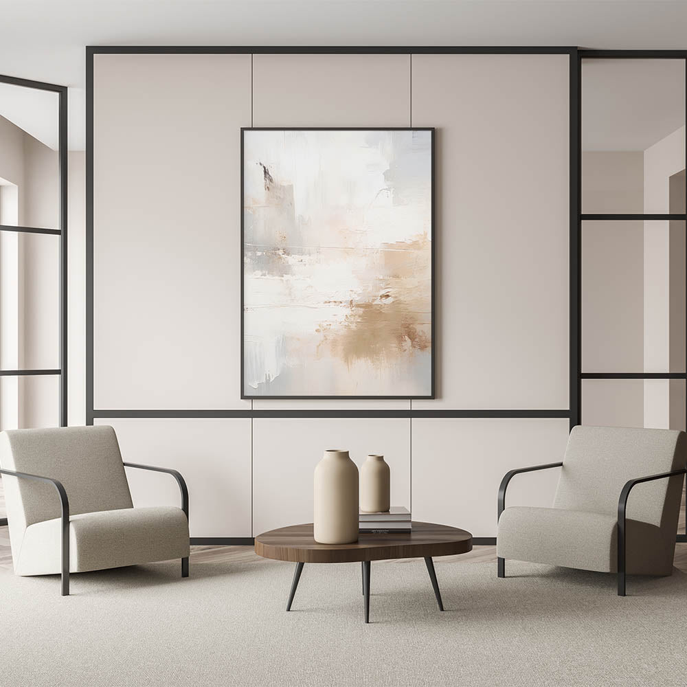 This abstract art piece is perfect for those who appreciate minimalist wall art designs. It’s a unique and stylish addition that will bring a sense of calm and refinement to your home decor.
