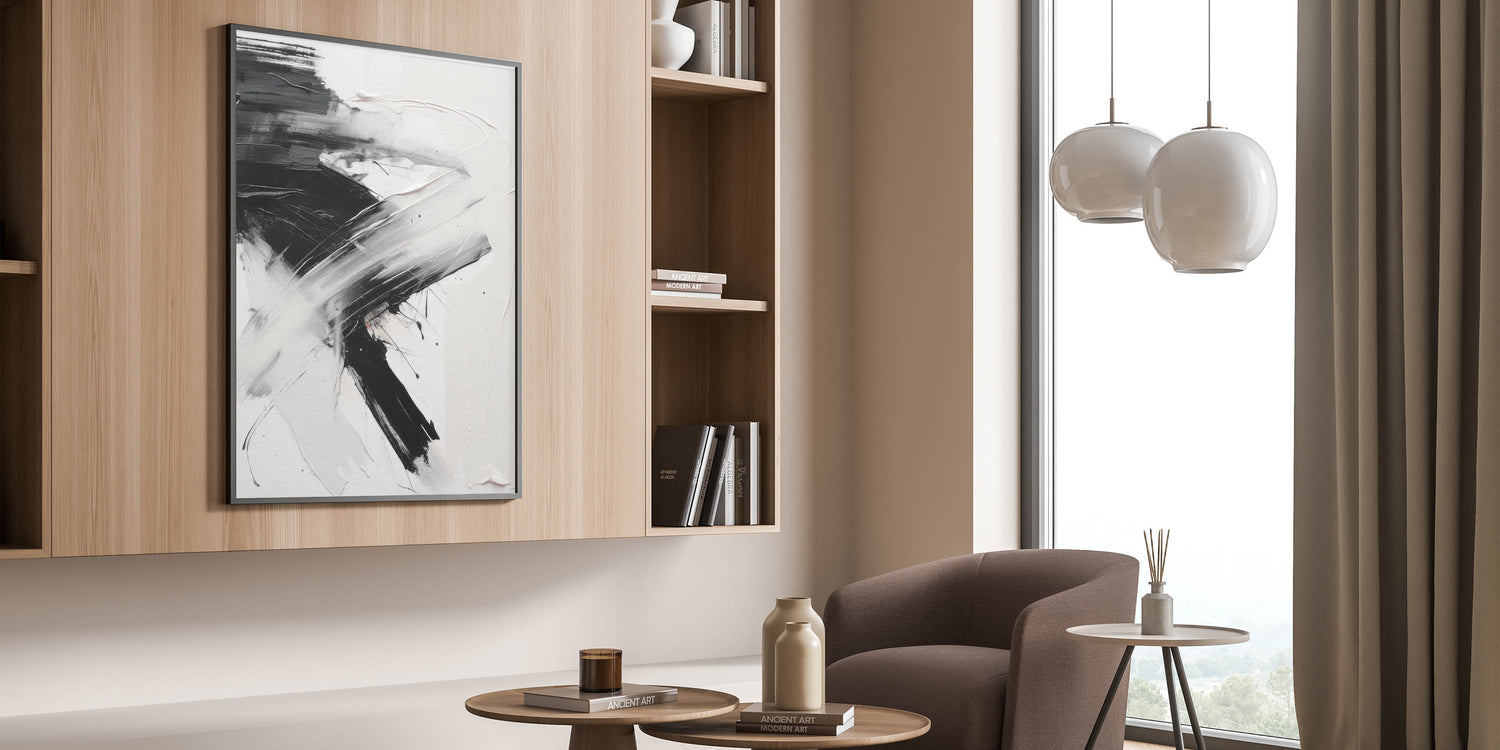 Modern Abstract Wall Art - Dynamic Black & White Textured Canvas Print