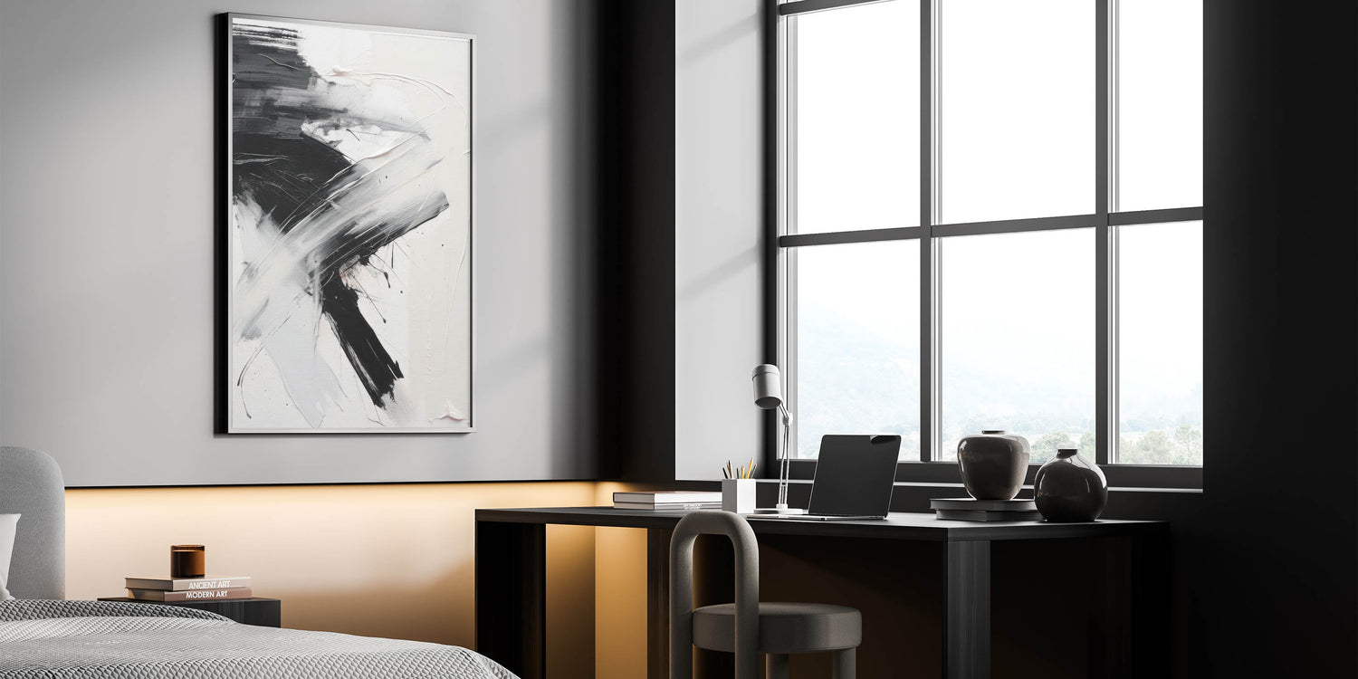 This unique abstract art piece is ideal for those looking to infuse their living space with modern sophistication and artistic flair. Whether displayed in a living room, bedroom, or office, its powerful contrast and dynamic composition will capture attention and spark conversation. Elevate your decor with this exquisite abstract canvas print, designed to make a lasting impression.