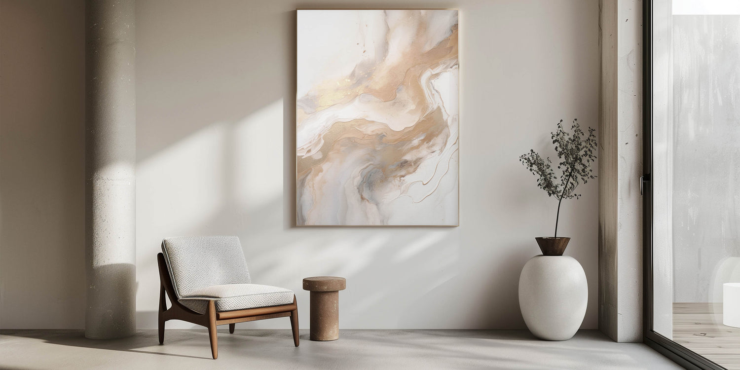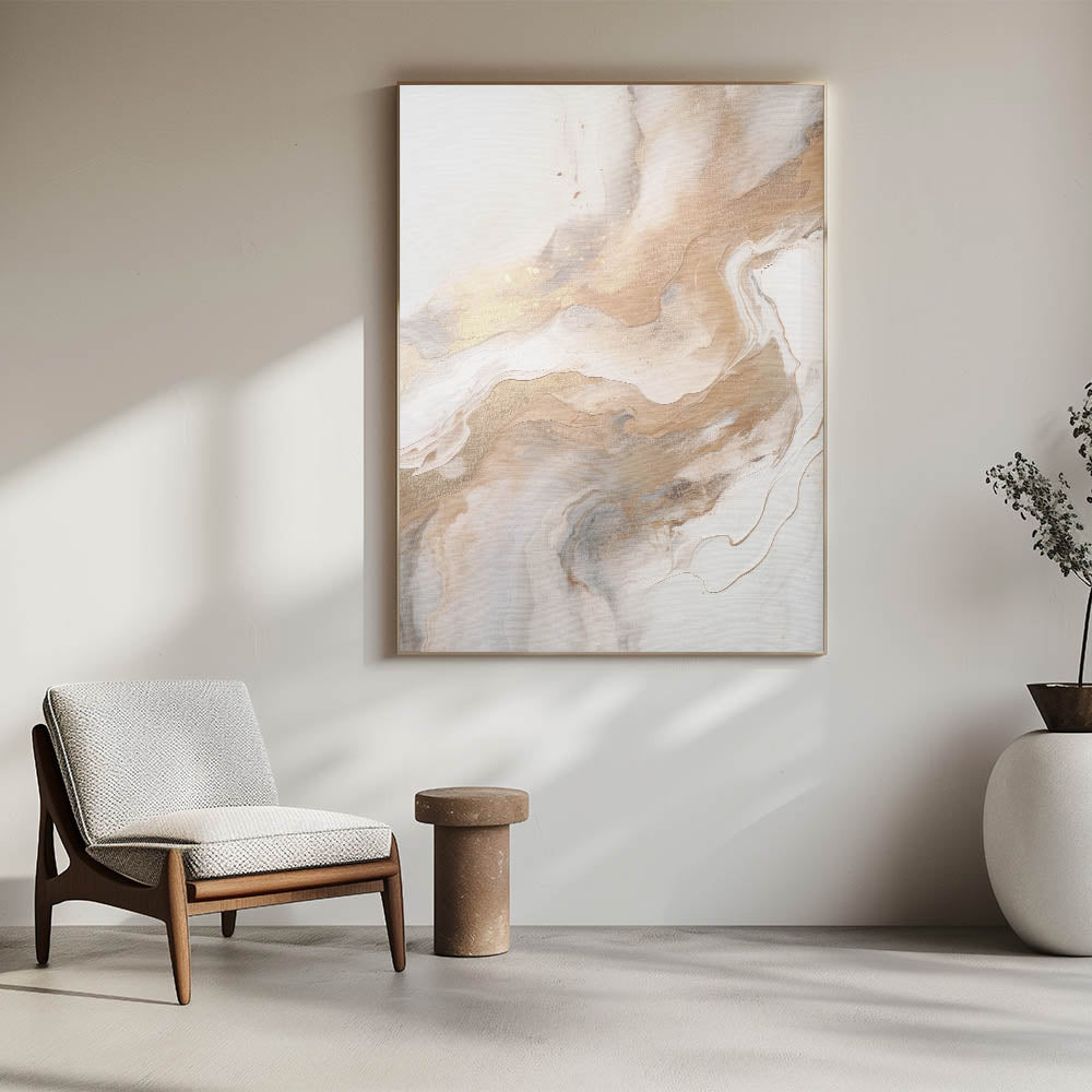 Modern Abstract Wall Art – Flowing Marble Design in Warm Gold and Beige