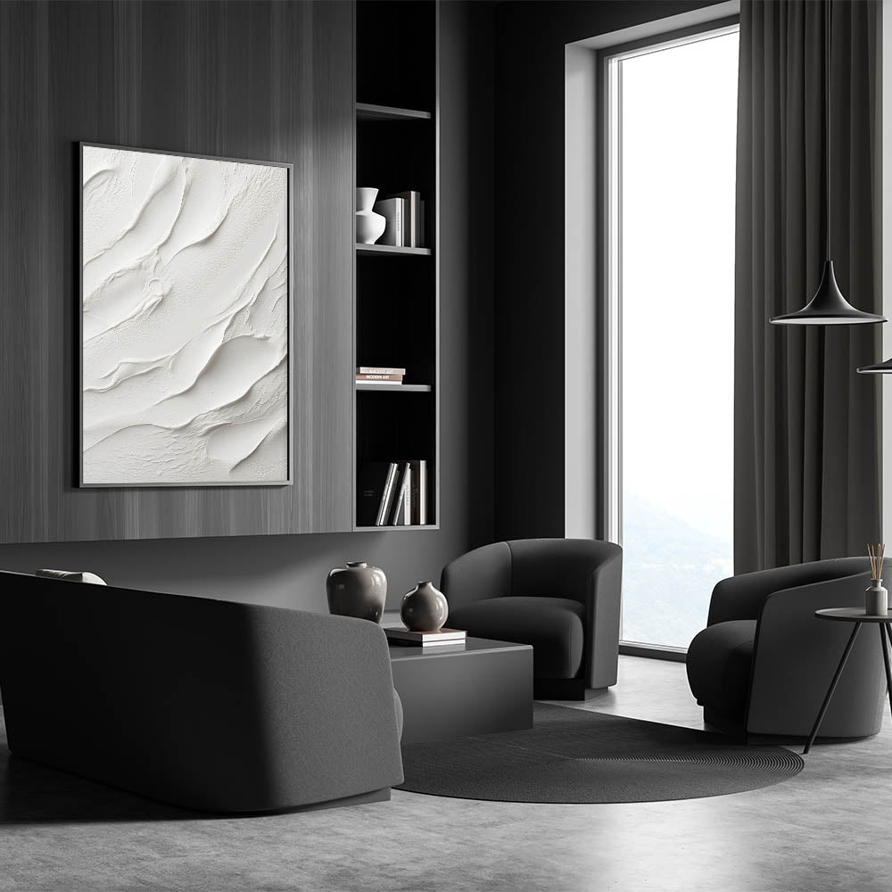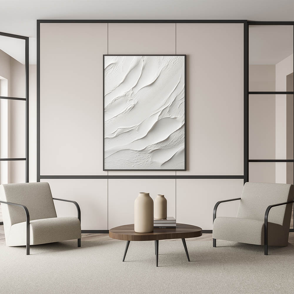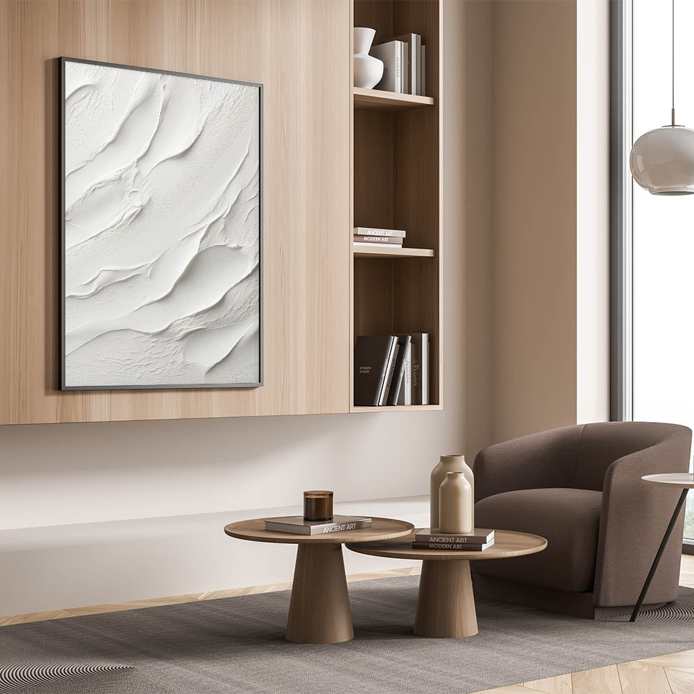 Elevate your home decor with this stunning piece of modern abstract wall art. Featuring a minimalist white texture that embodies contemporary design, this artwork brings a sense of calm and sophistication to any space. The flowing textures and monochrome palette make it a versatile addition to a variety of interior styles, whether you're aiming for a chic, modern look or a more traditional aesthetic.