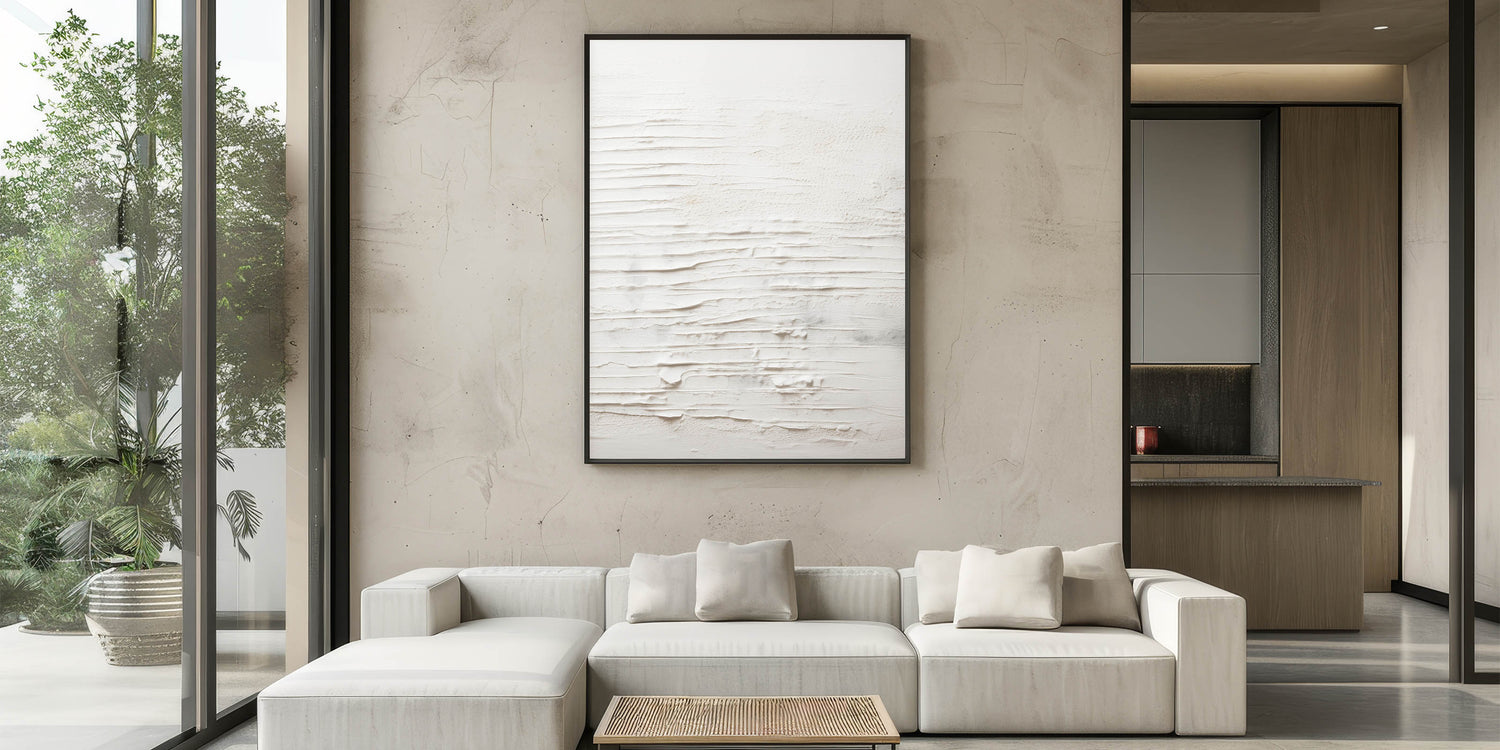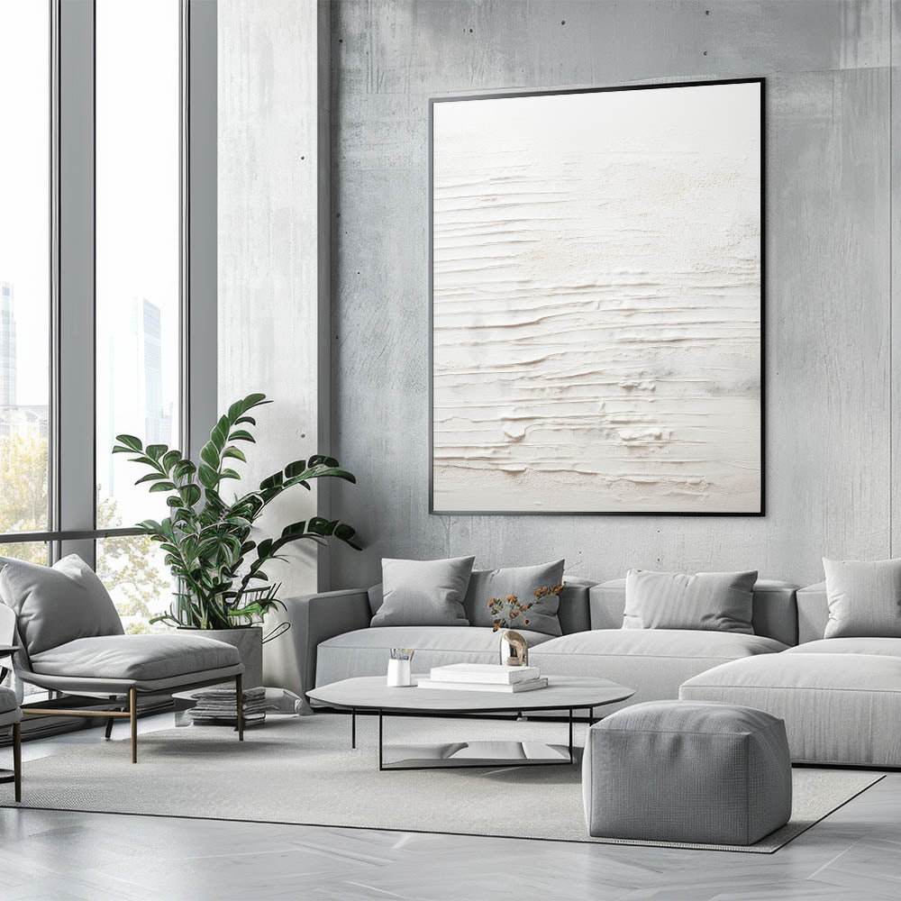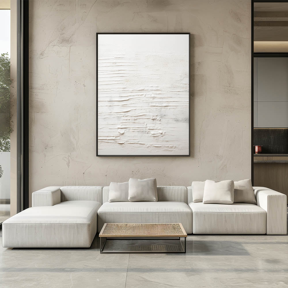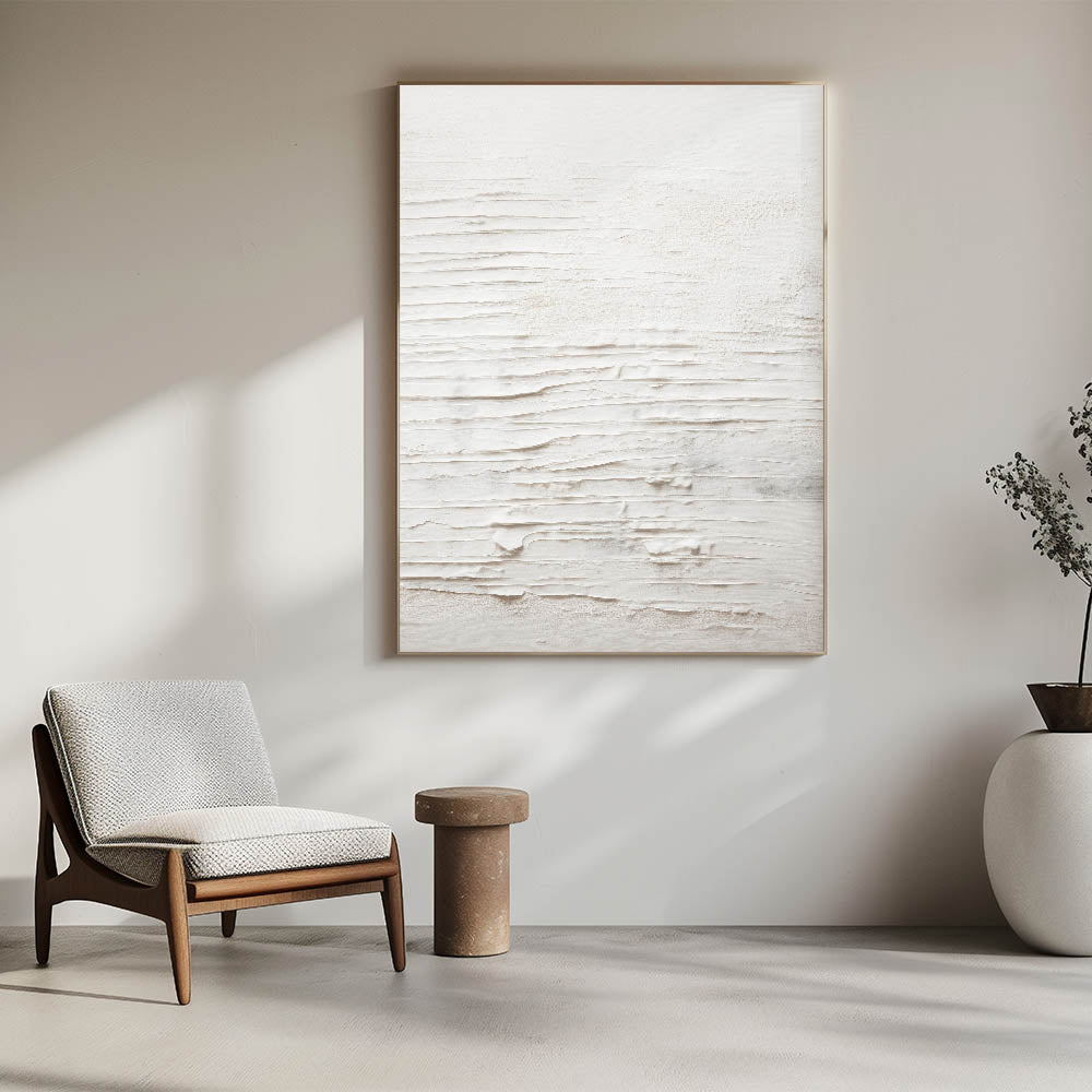 Enhance your space with the serene simplicity of this modern abstract wall art, featuring minimalist white textured layers. The subtle play of texture and tone in this piece creates a calm and elegant atmosphere, making it a perfect addition to any contemporary living space.
