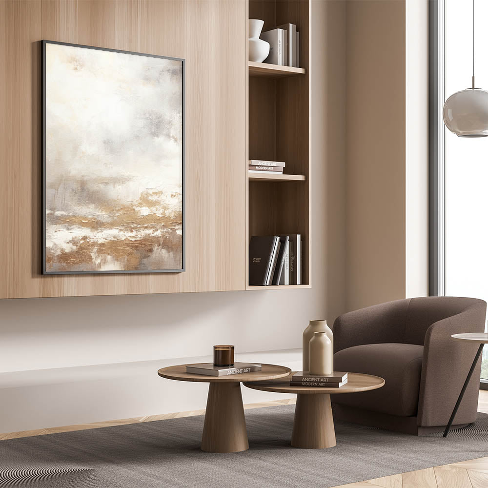 Infuse warmth and texture into your space with this stunning piece of modern abstract wall art, featuring a beautifully textured landscape in rich, earthy tones. The blending of soft browns, creams, and whites creates a serene and inviting atmosphere, perfect for adding depth and character to any room.