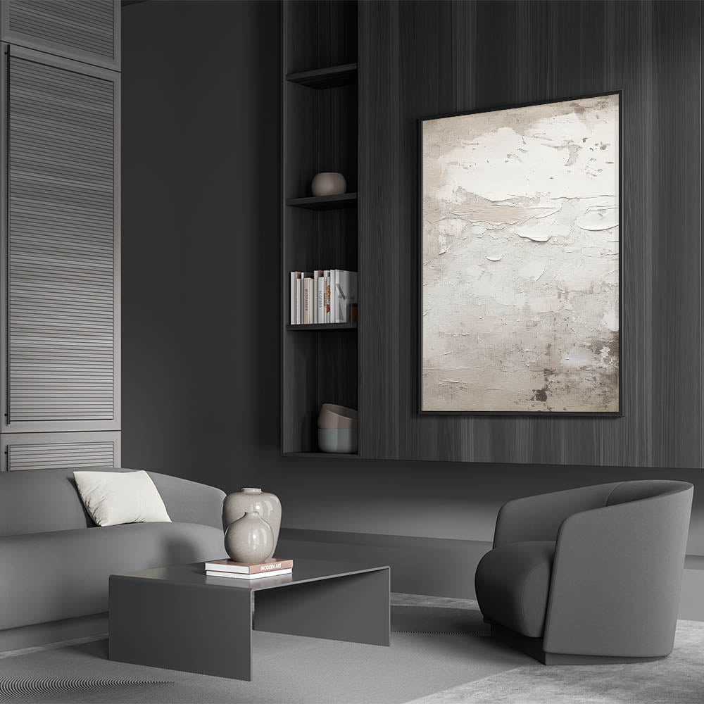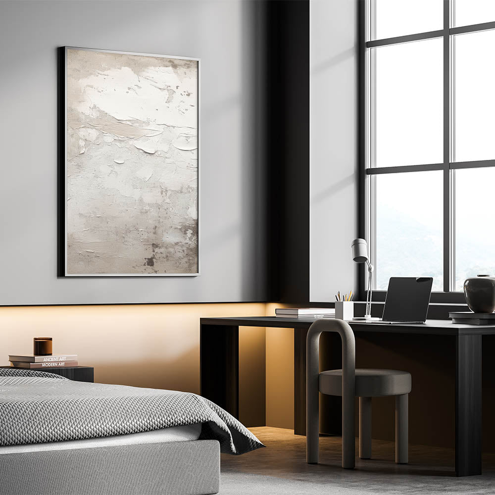Add a touch of understated elegance to your home with this modern abstract wall art featuring a textured, minimalist design in neutral tones. The subtle blend of beige, white, and gray creates a calming and sophisticated atmosphere, perfect for enhancing the aesthetic of any contemporary living space.