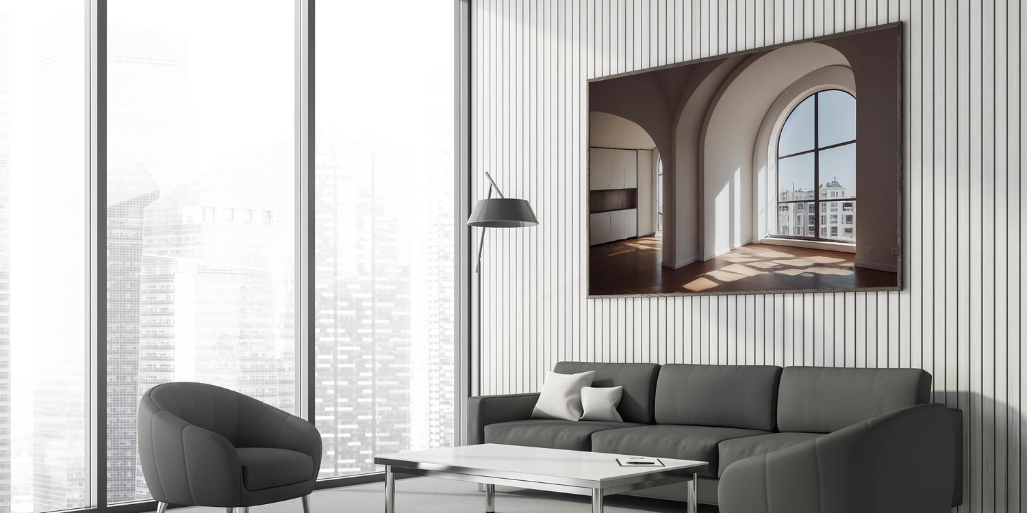 Elevate your space with this refined piece that celebrates the beauty of simplicity in architecture. Whether you prefer the understated elegance of a framed print or the contemporary appeal of acrylic glass, this artwork will enhance any interior with its modern sophistication. Let the gentle curves and natural light bring a sense of peace and clarity to your home.