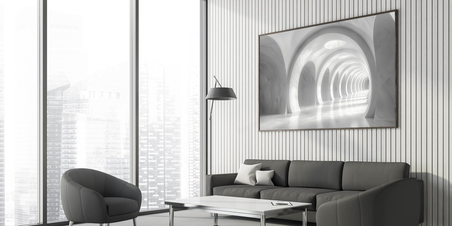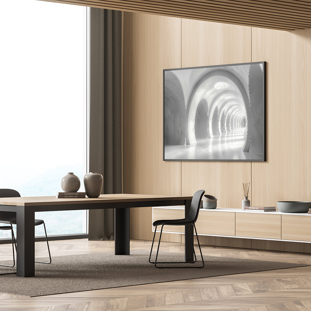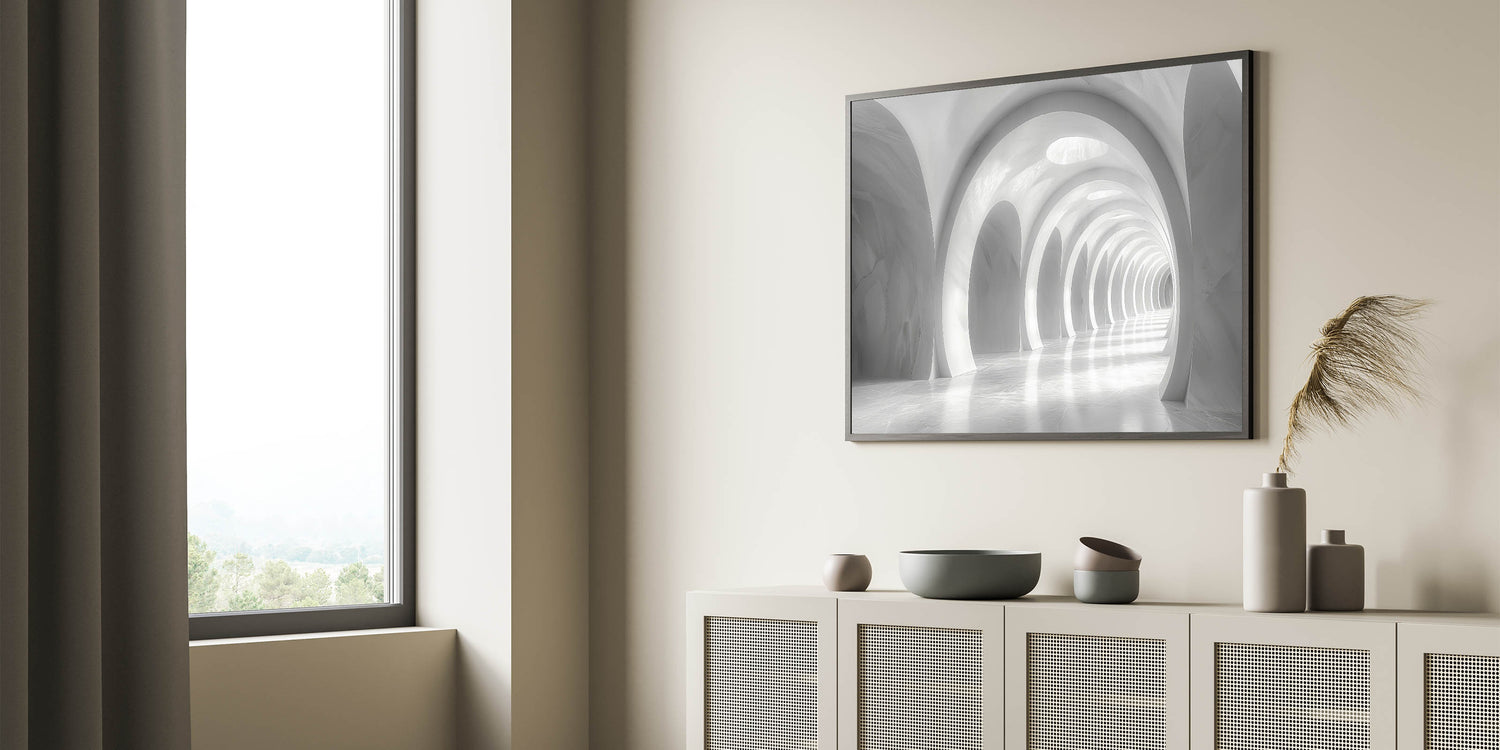 Bring the calm and order of modern architecture into your home with this minimalist arches artwork. Its abstract design and sleek style make it a sophisticated focal point in any room.