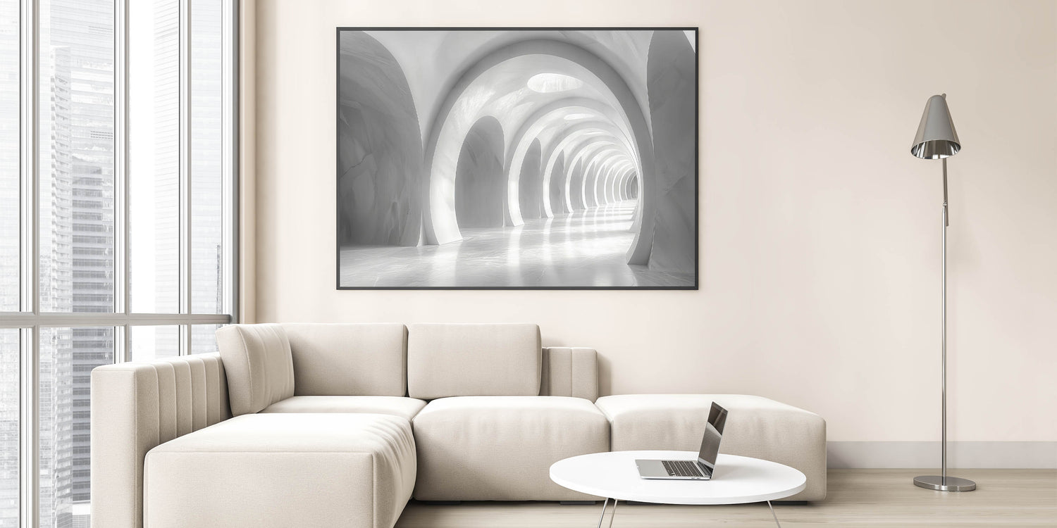 Modern Arches Wall Art - Minimalist White Abstract Corridor Print