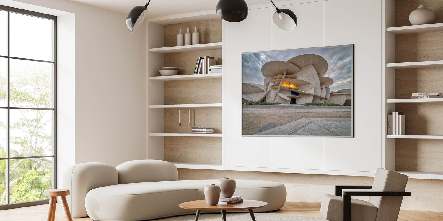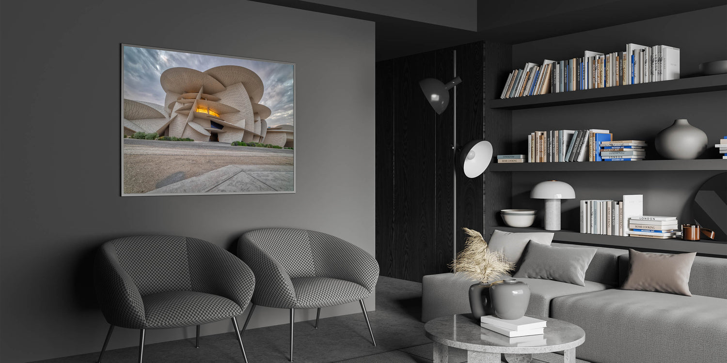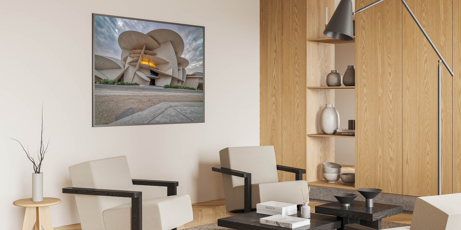 Showcase the cutting-edge architecture of Qatar with our "Modern Architecture Qatar - Iconic Building Canvas Print." This artwork captures the dynamic and innovative design of one of Qatar’s most distinctive buildings, characterized by its unique, flowing form and intricate textures.