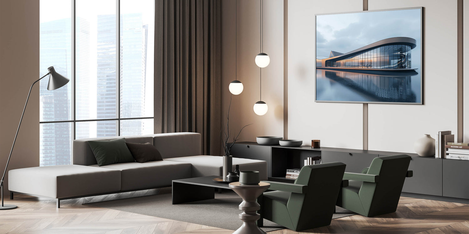 This museum-quality art print is more than just a decorative piece; it’s a statement of modern elegance and architectural sophistication. Whether displayed in a living room, office, or gallery, this artwork will add a touch of contemporary serenity to your space.