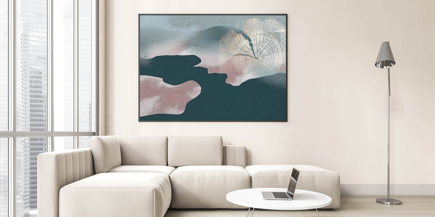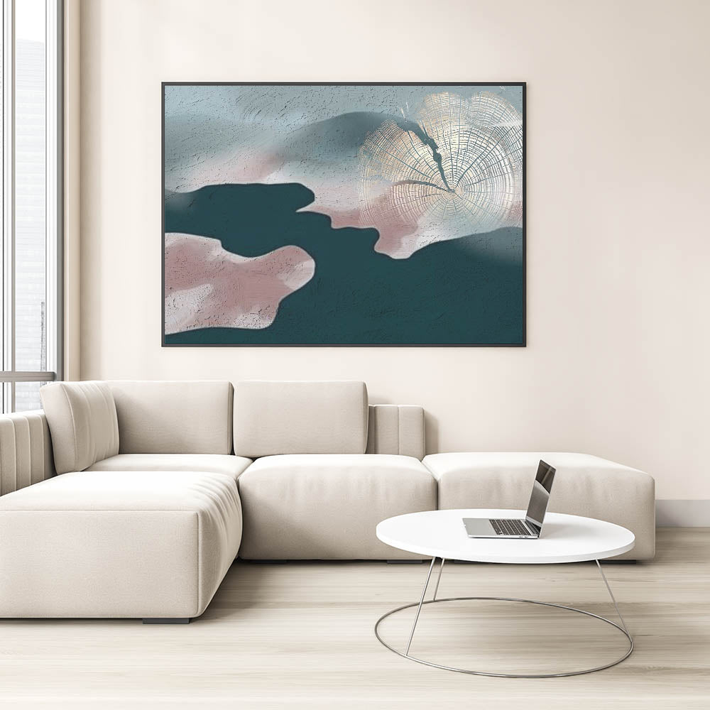 Immerse your space in the serene beauty of nature with this modern tree ring abstract art. This piece features a captivating blend of earthy tones, soft pinks, and deep greens, with a central tree ring design that adds a touch of natural elegance. The flowing, abstract shapes contrast beautifully with the intricate details of the tree ring, creating a harmonious balance between modern design and organic elements. Perfect for any room in your home, from living areas to bedrooms or even offices, this artwork adds a calming and sophisticated touch to your decor.