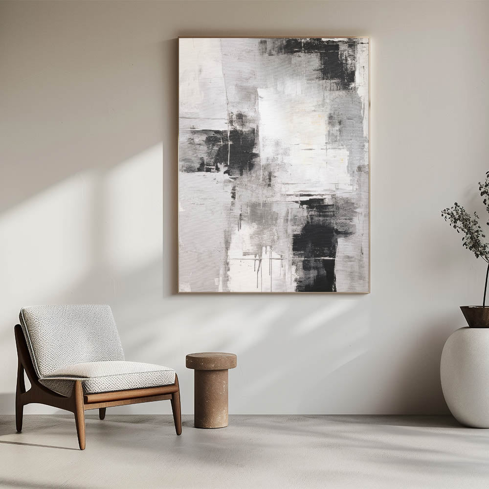 Add a dramatic and modern touch to your interior with this monochrome abstract expression wall art. The bold composition features dynamic brushstrokes in shades of black, white, and gray, creating a visually striking piece that embodies the essence of abstract expressionism. Perfect for minimalist and contemporary settings, this artwork brings depth and character to any room, whether it’s a living space, office, or gallery wall. The intricate textures and contrasts make this piece a captivating focal point in any decor.