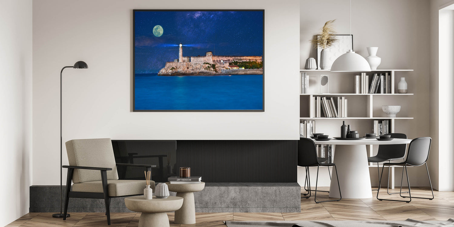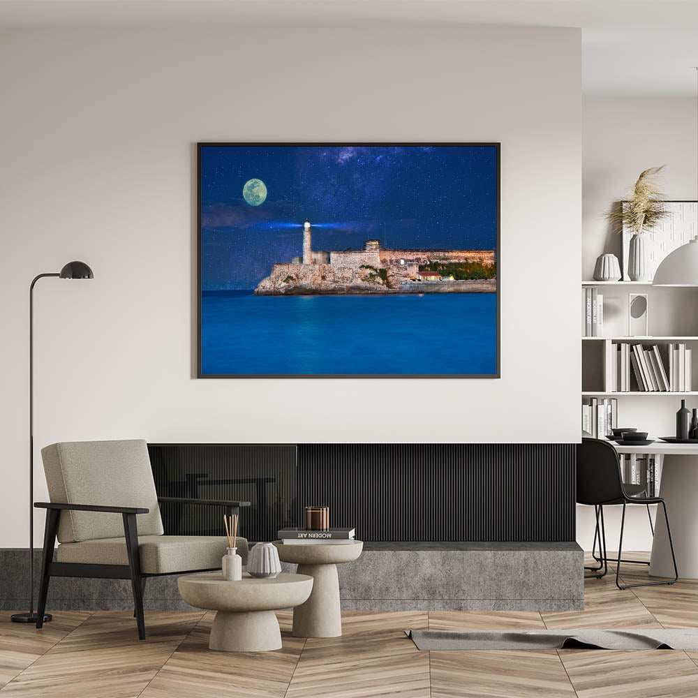 Moonlit Havana Lighthouse Wall Art - Night Sky Cuban Coastal Scene